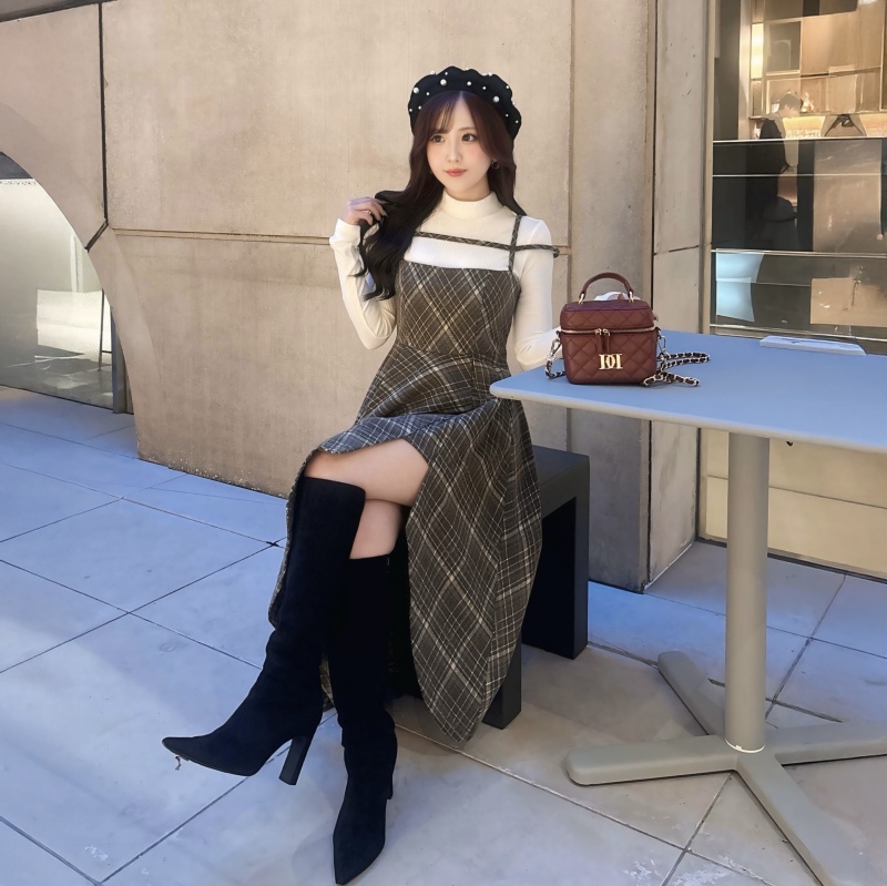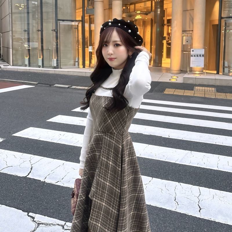 クラシカルなチェック柄が目を惹く!レイヤードスタイルのワンピースセット✨