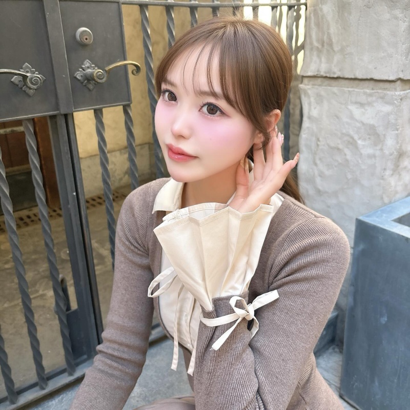 袖口のフレアカフスには細リボンをあしらって、手元まで抜かりなくあざと可愛い印象に🤍🎀