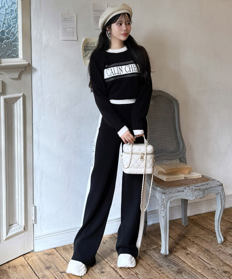 美脚見えが叶う、ワイドストレートのジャガードニットパンツが登場