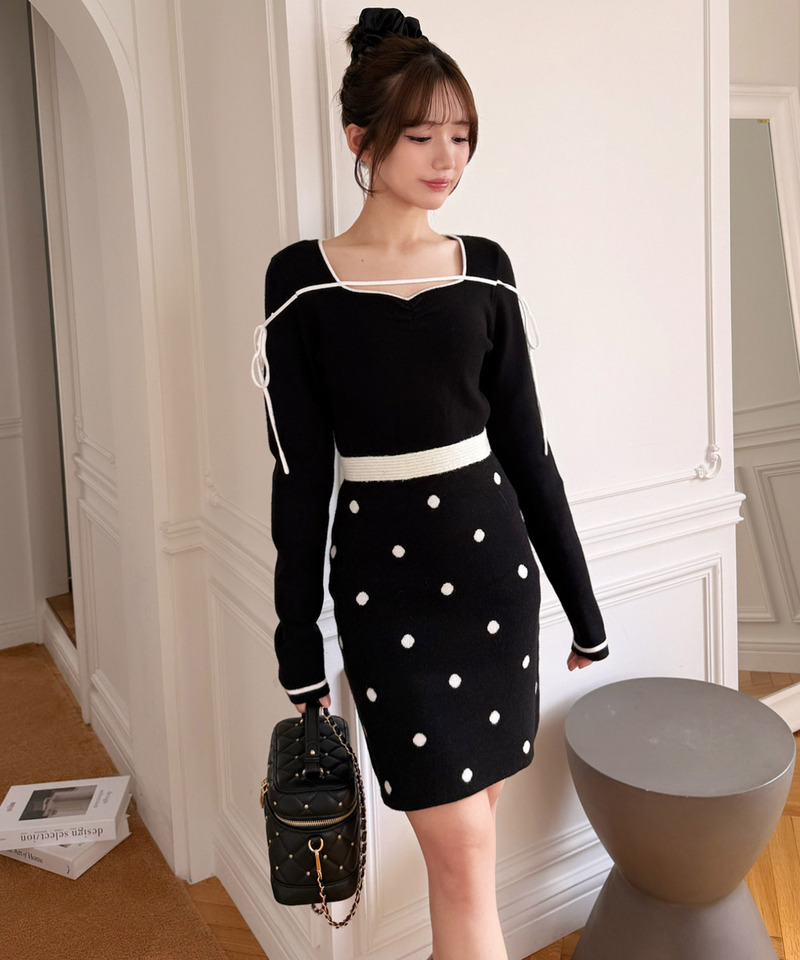 スカート部分に施した存在感抜群のドットジャガードが目を惹くニットミニワンピース。