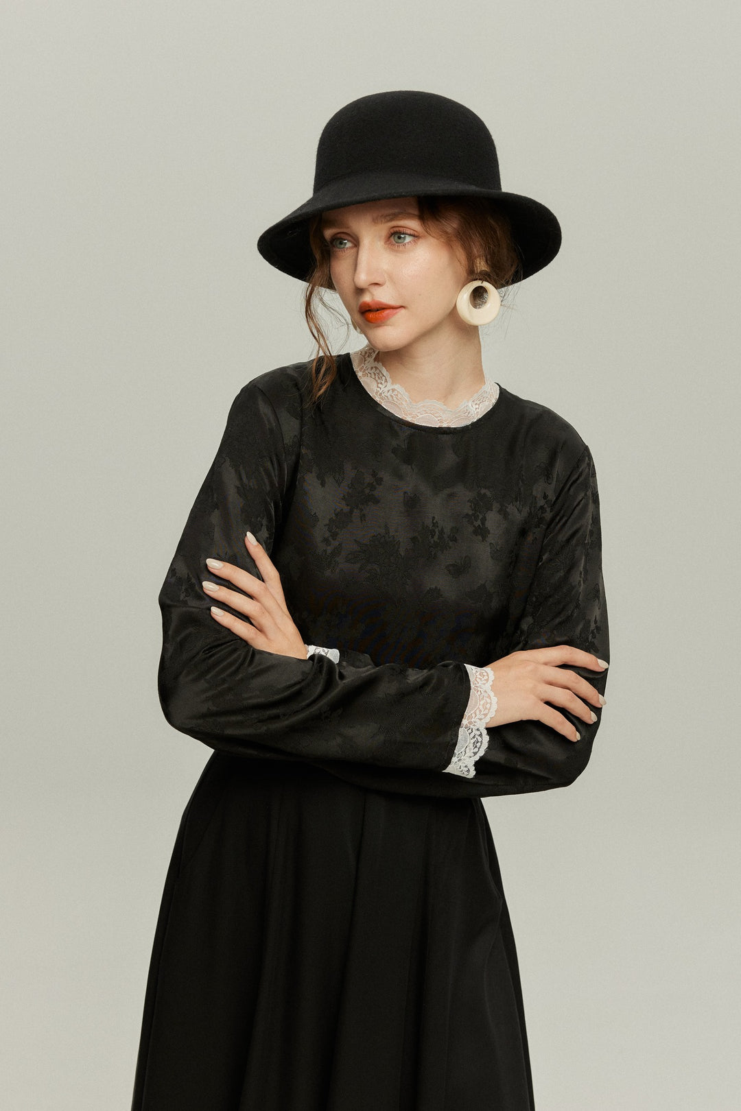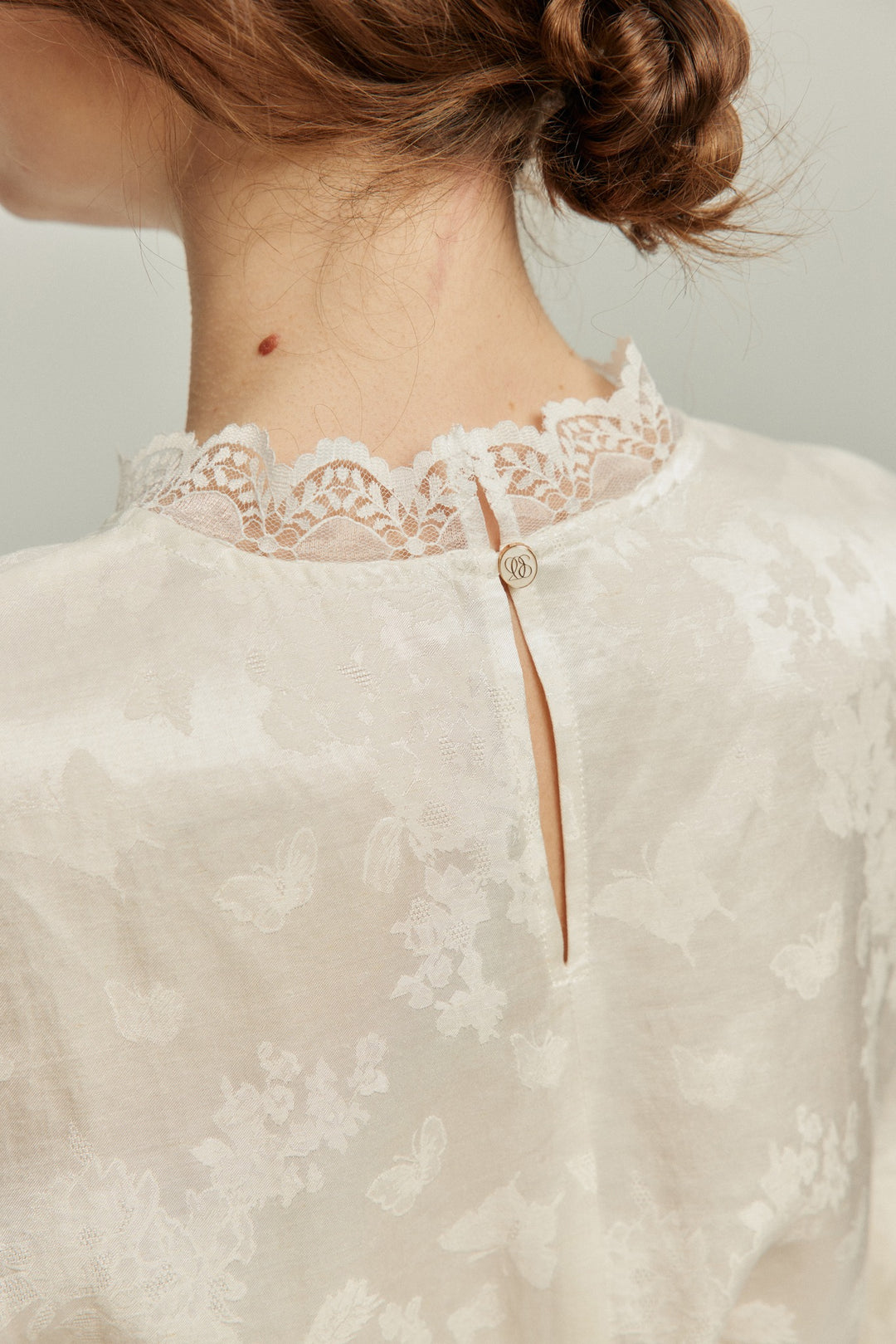 袖や襟のレーストリムがより華やかに見せてくれます✨