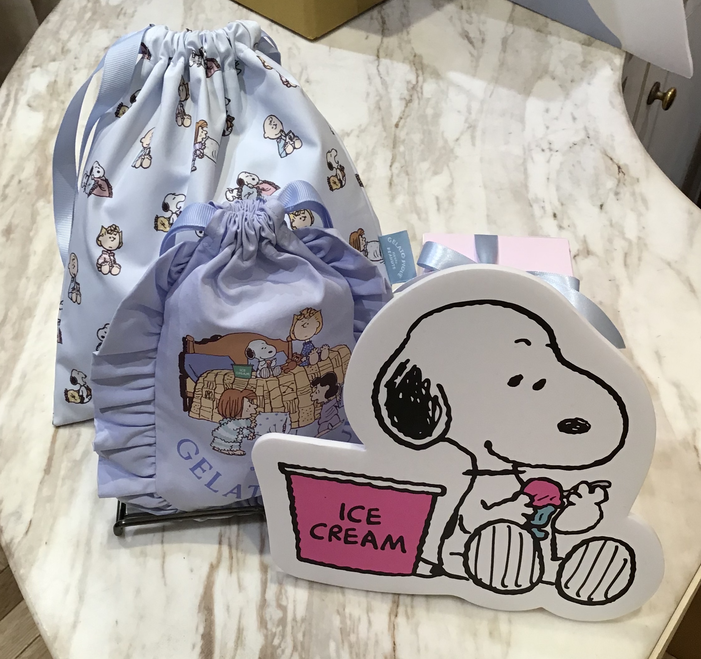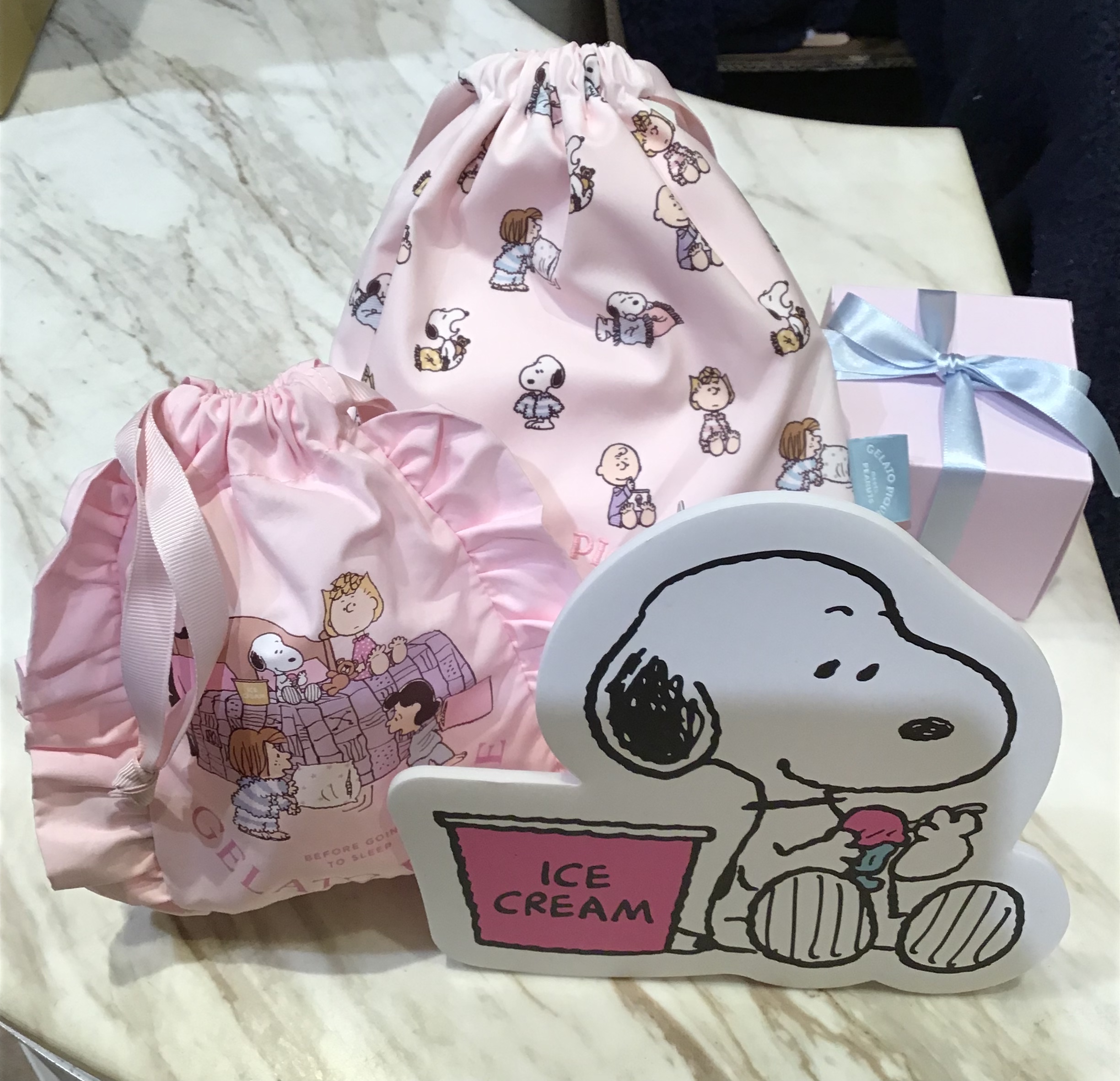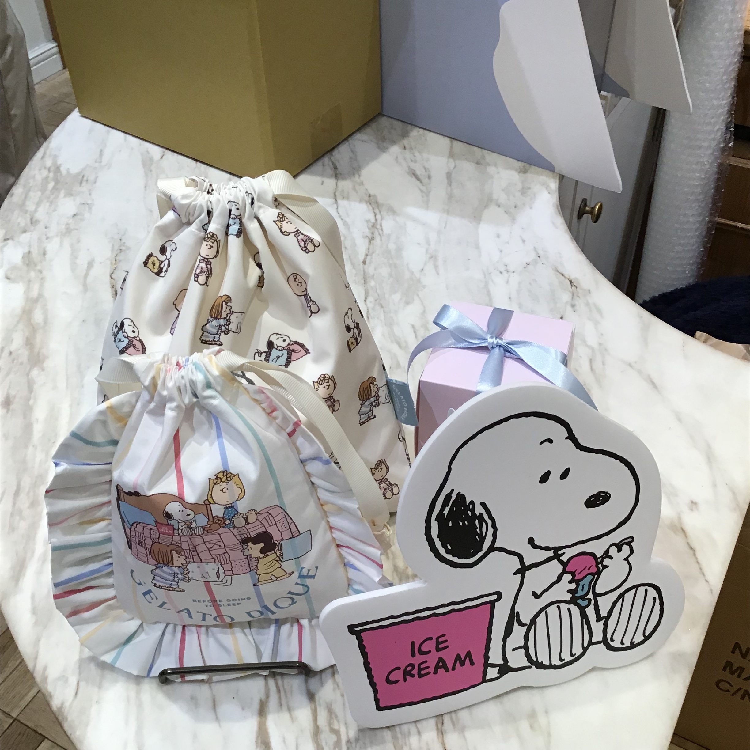 PEANUTS とgelato piqueだけのオリジナル描き起こし・2サイズを組み合わせたgelato piqueだけの特別なオリジナルアート巾着セット🎀