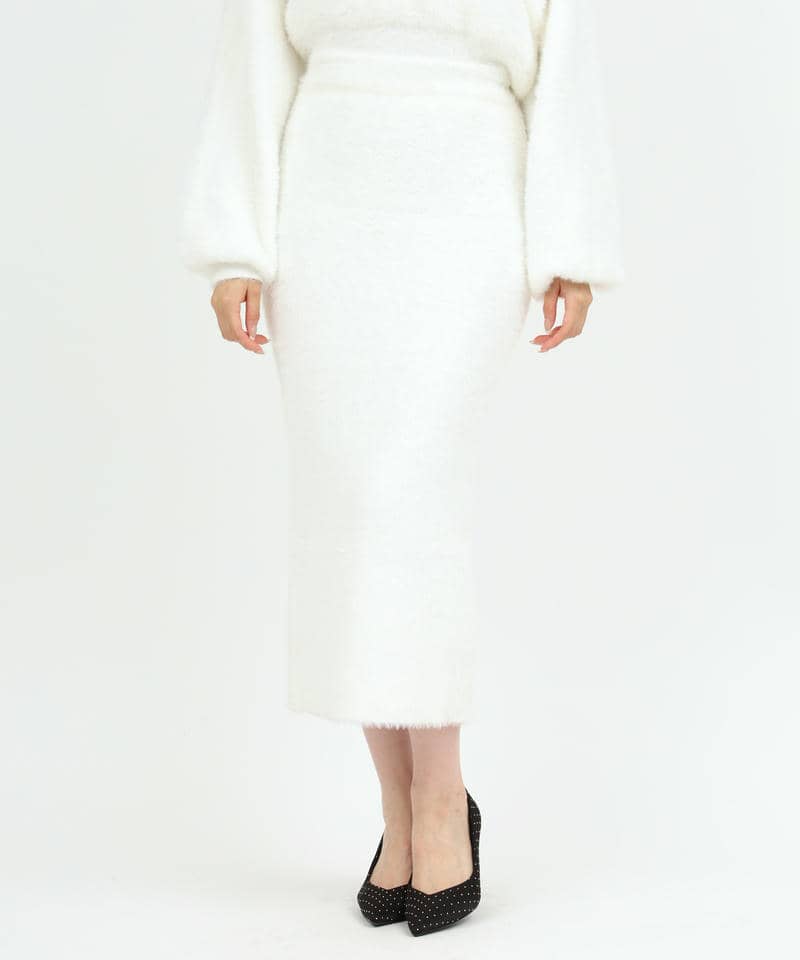 ふわっと柔らかなシャギーニット素材で仕立てたタイトロングスカート。