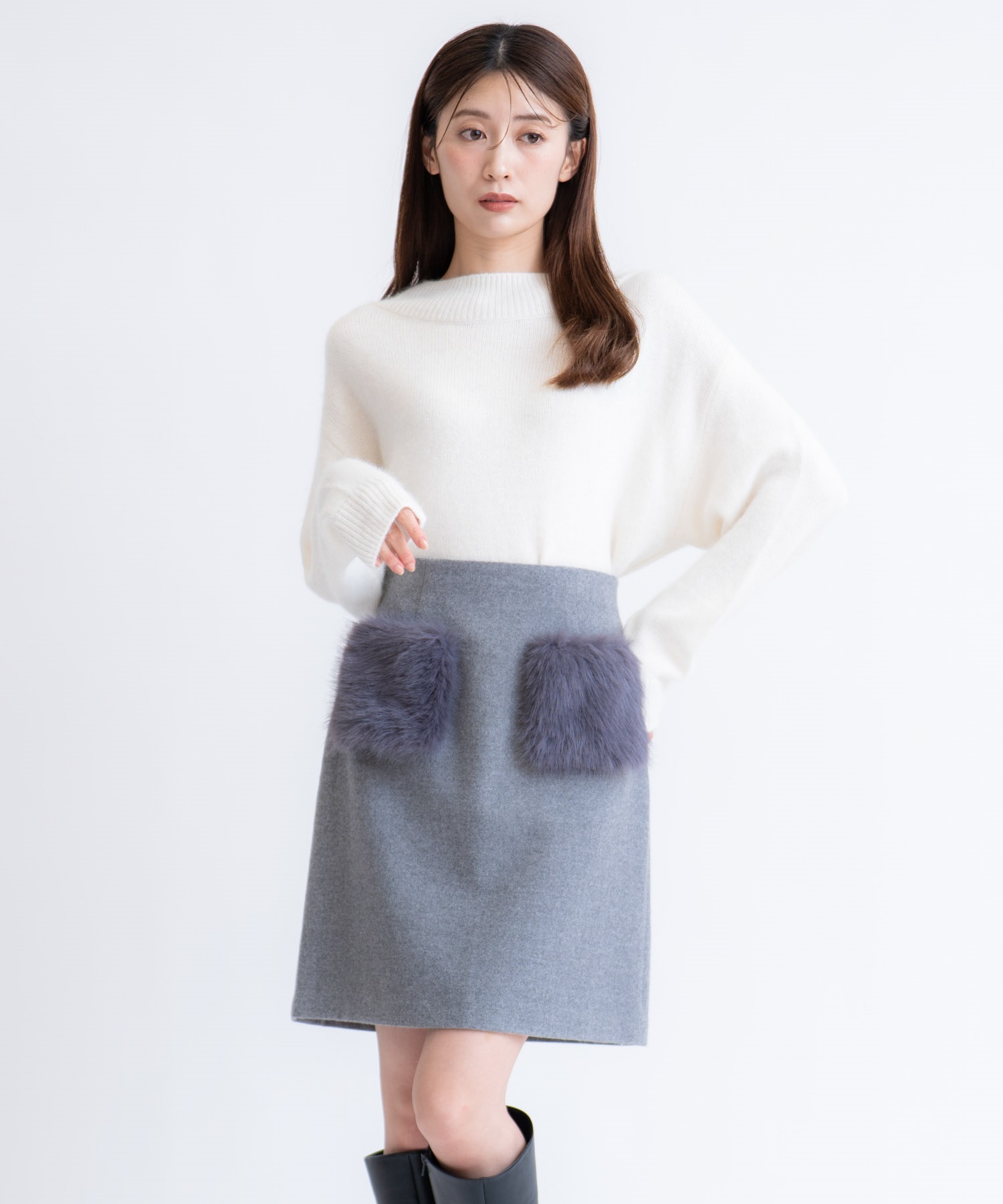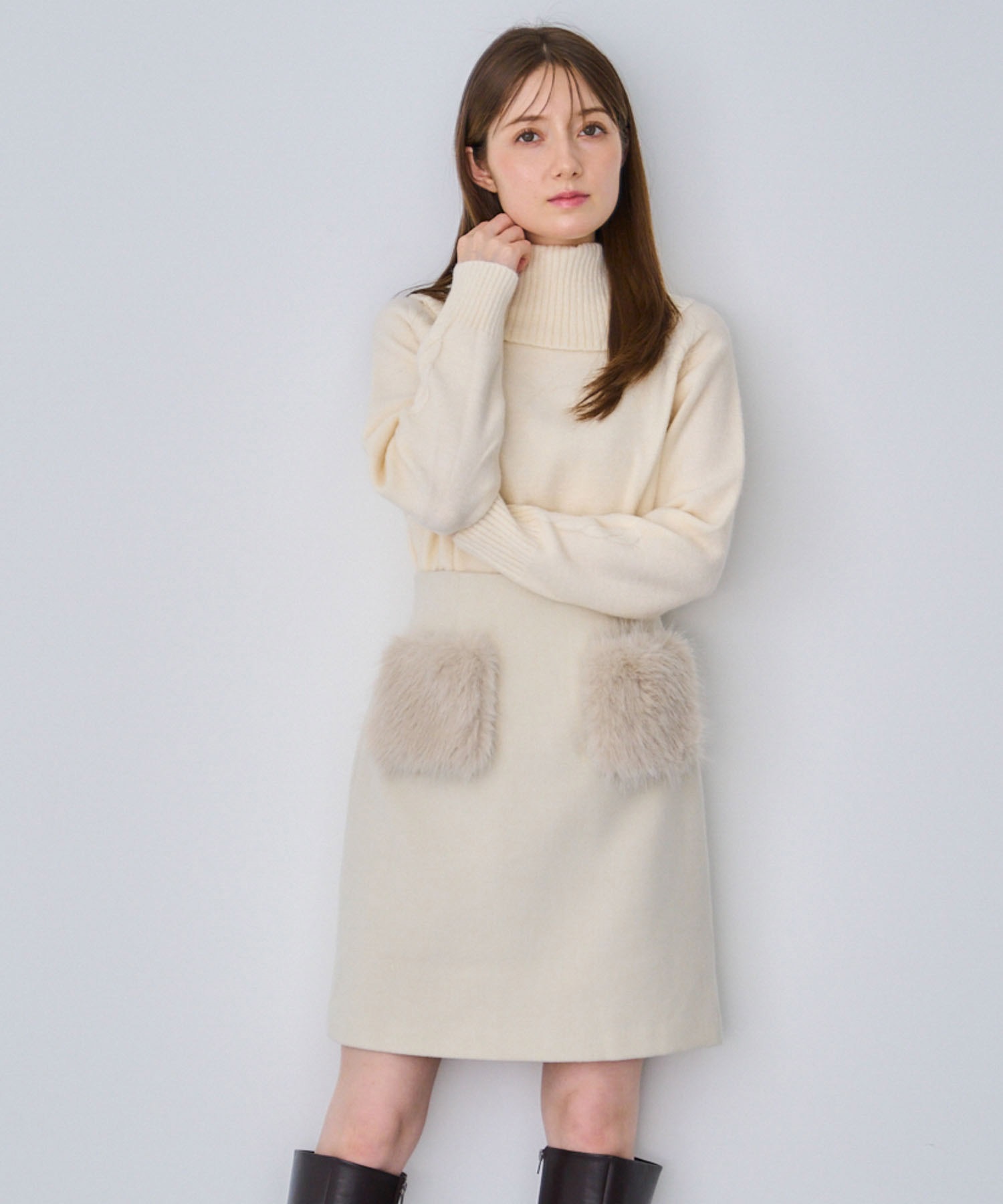 ショートブーツやタイツと合わせて冬のスタイリングを楽めます。