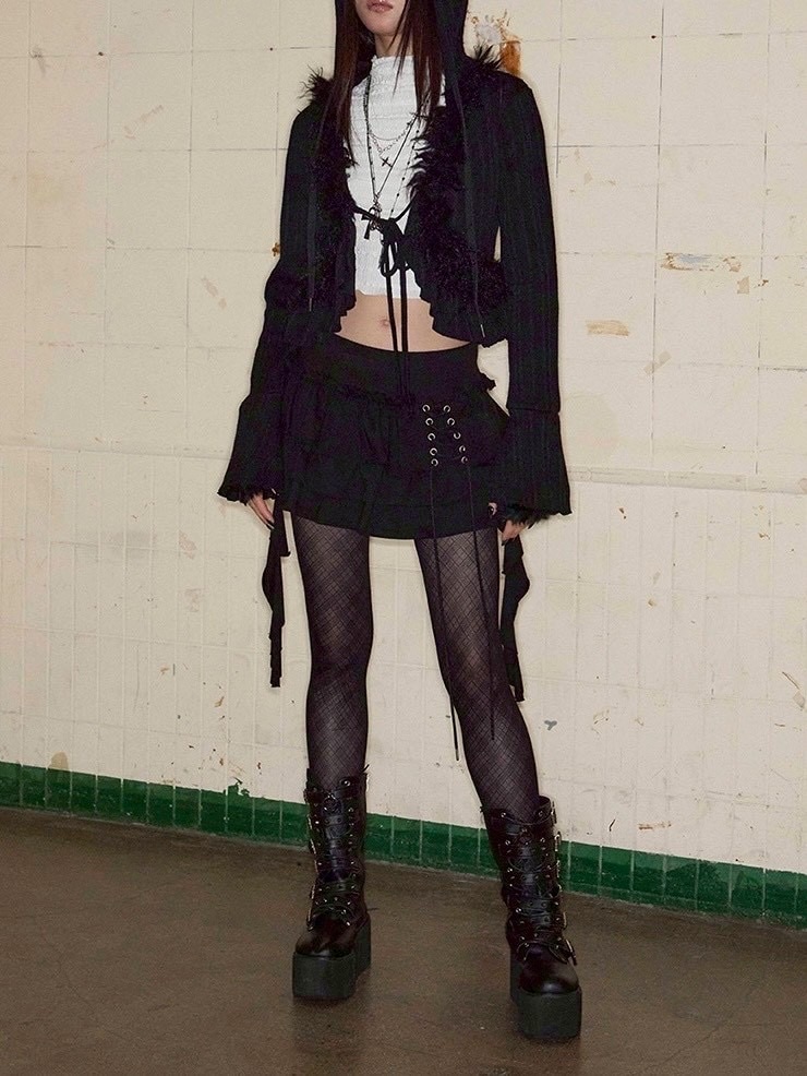 パーカーとセットアップで着ても可愛すぎるフリルスカート。