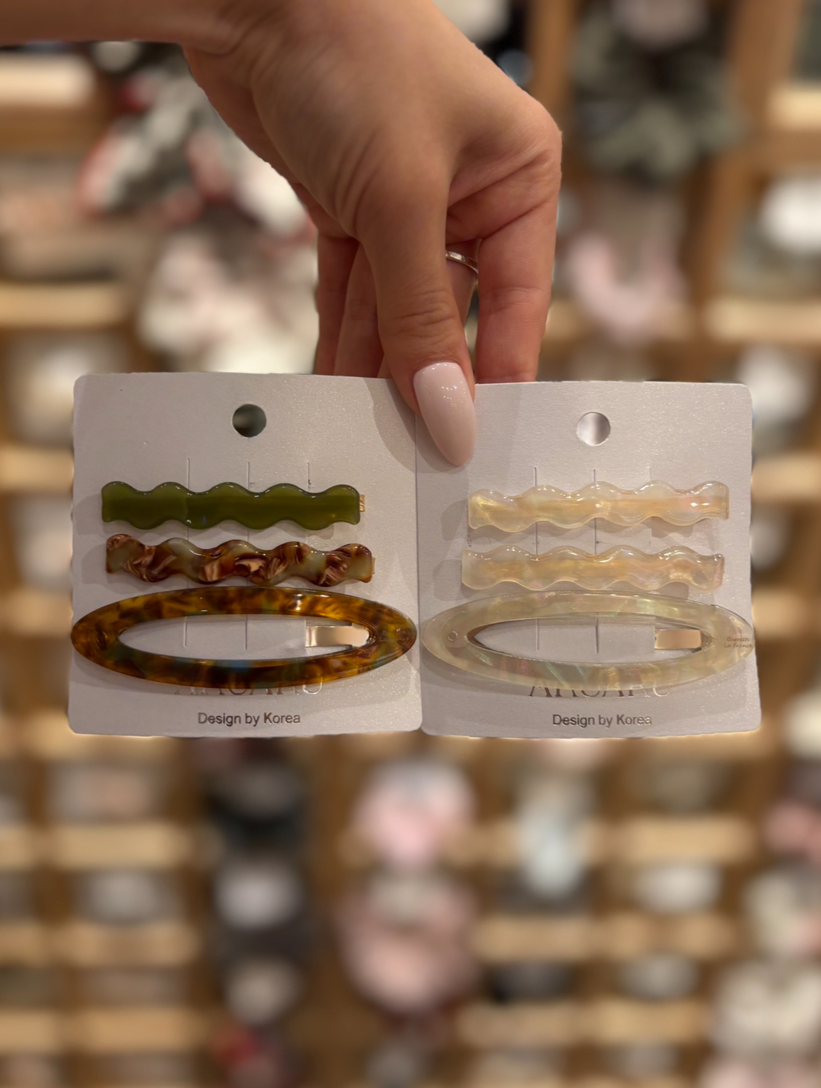 ウェーブピンと、ニュアンス感たっぷりのオーバルバレッタがセットになったヘアアクセ🧡