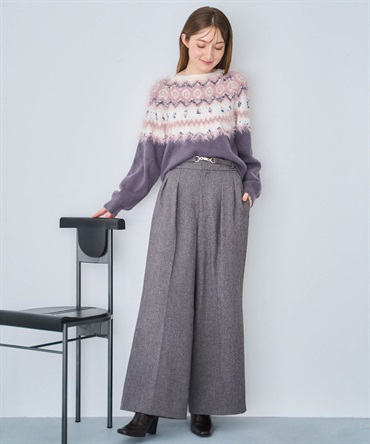 上品なツイード素材を使用した、2タック入りのワイドパンツ。