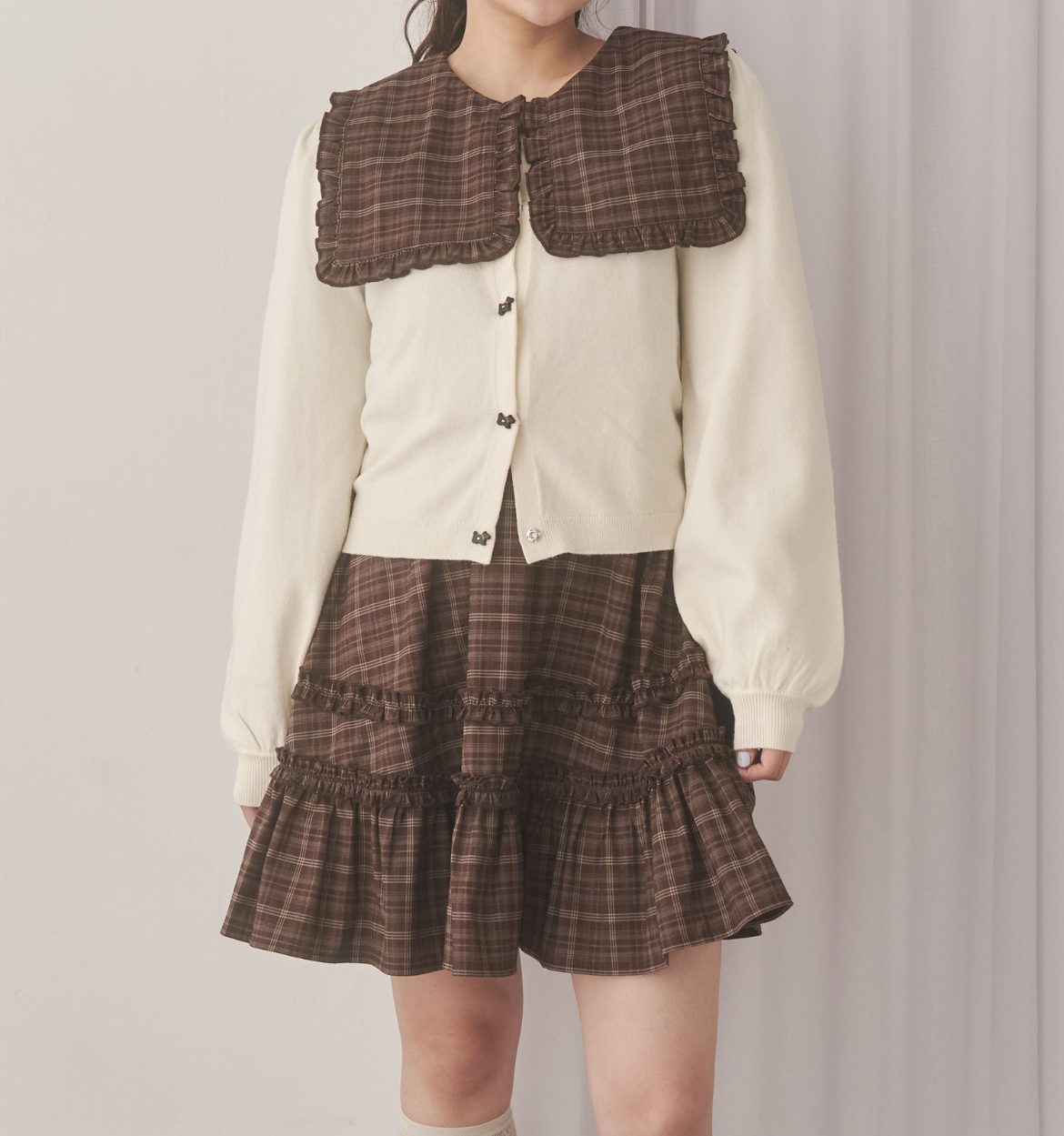 秋冬らしいチェック柄生地を使用したミニワンピ―ス。