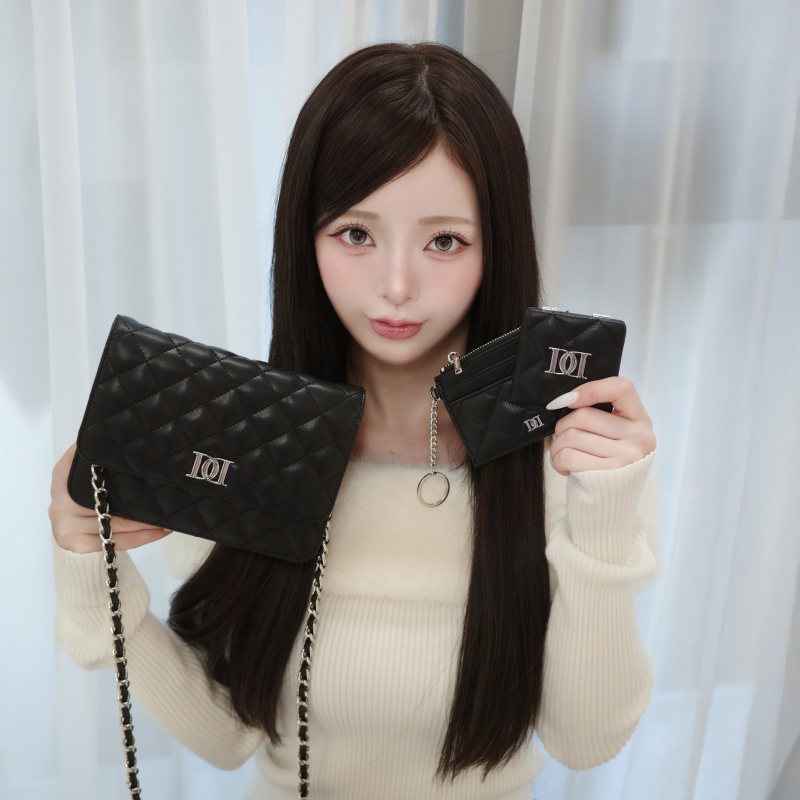 上品なキルティング×DDパーツが映える、“高見えウォレットバッグ+カードケース+ミラー”の豪華3点セット♡