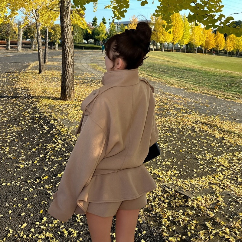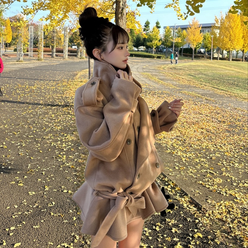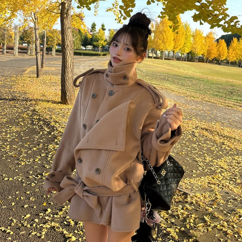 高めのスタンドカラー×ダブルボタンでクラシカルに✨