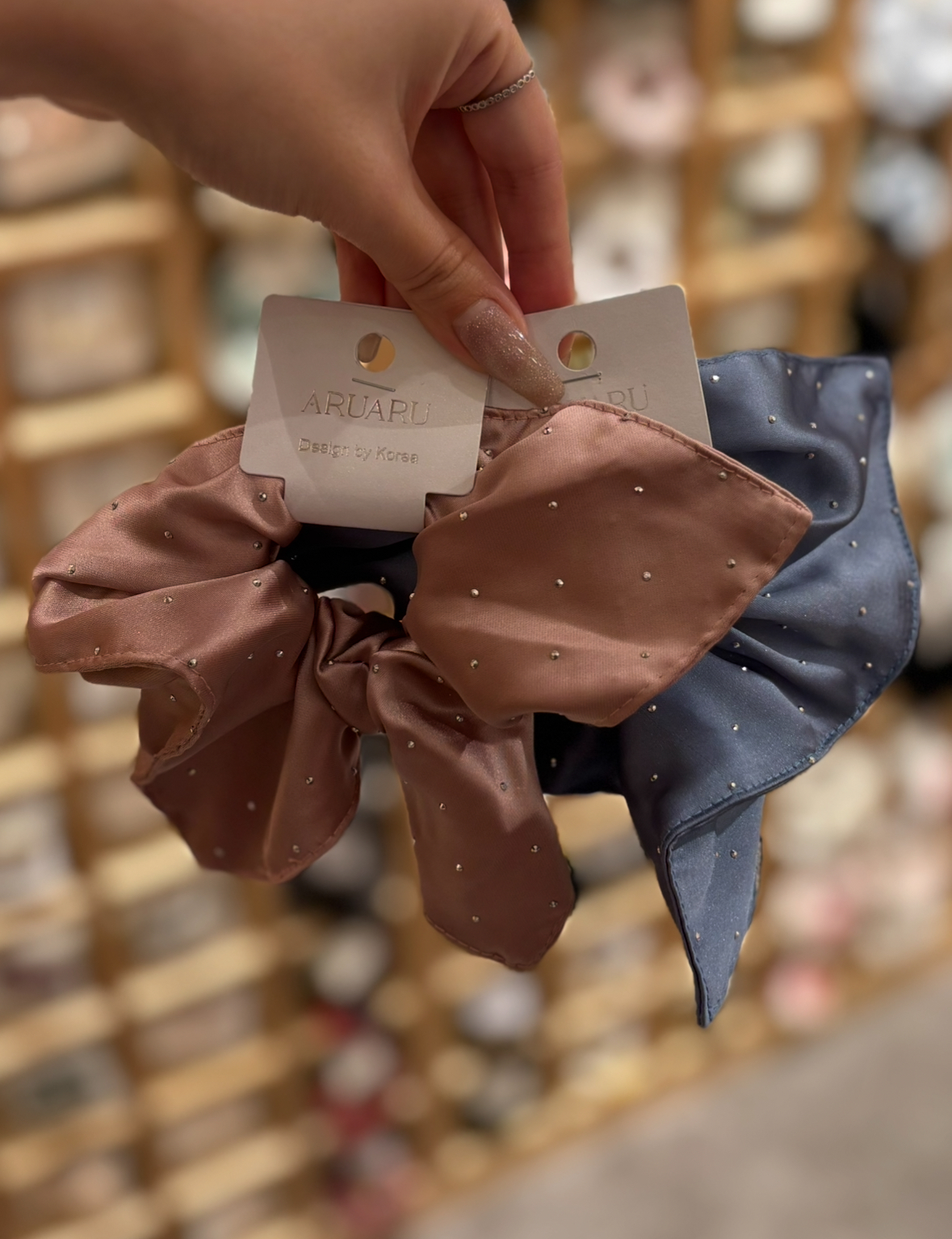 四角い形の生地がふんわり広がるデザインのシュシュ✨