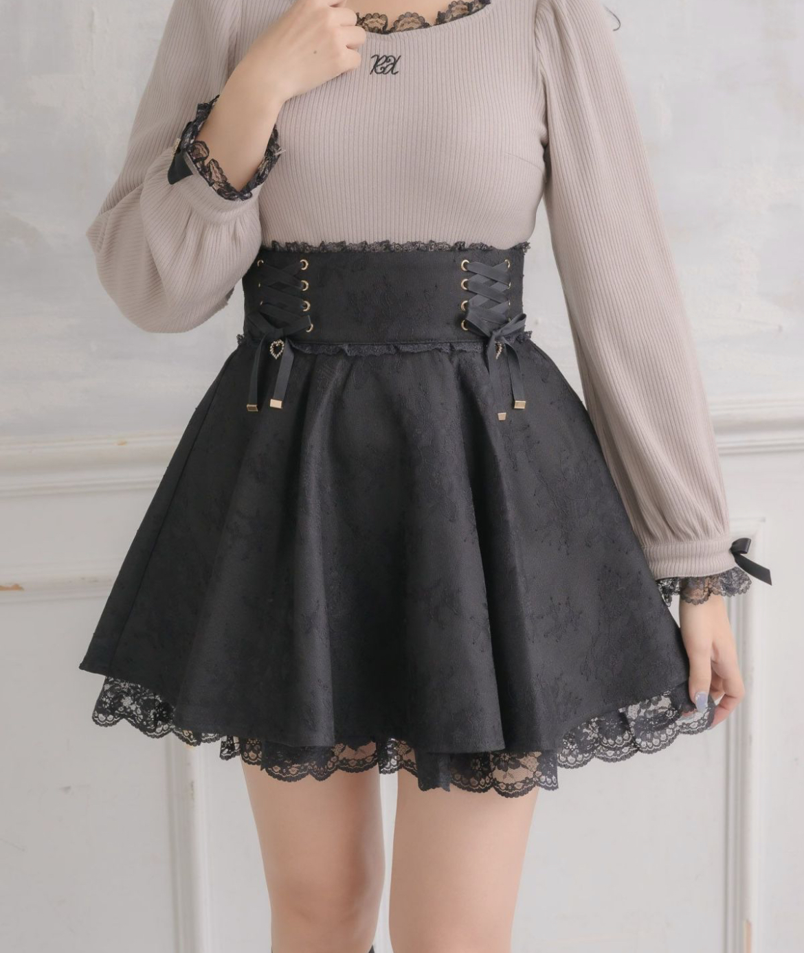 華やかさと立体感を兼ね備えた2段ティアードフレアスカート。レースを重ねたボンディング素材がほどよいハリを生み、タック入りのシルエットが上品なボリュームを演出。サイドのレースアップリボンが、女性らしさと洗練された印象を際立たせます。