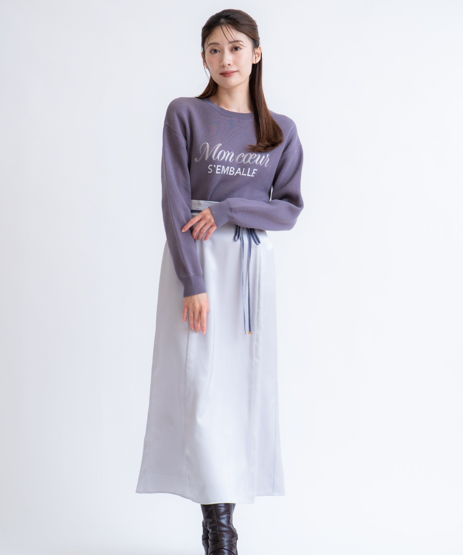 光沢感のあるサテン素材が、上品な華やかさを演出します。