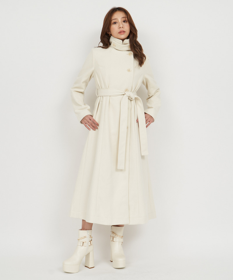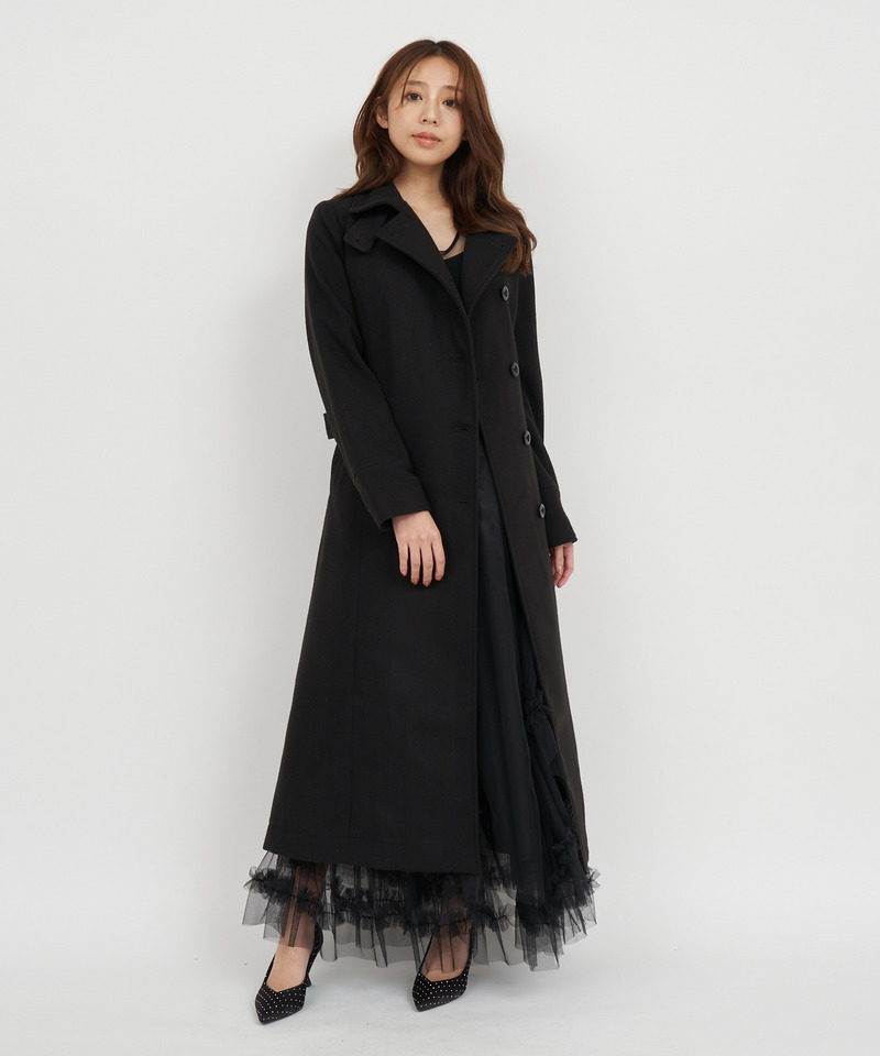 バックにたっぷりとタックを施した、ドラマティックなシルエットが印象的なロングコート。