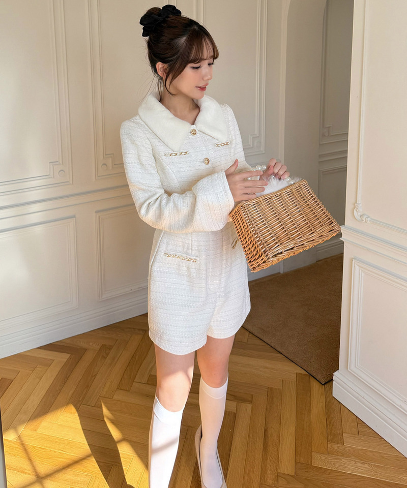 ファー付ツイードコンビネゾン