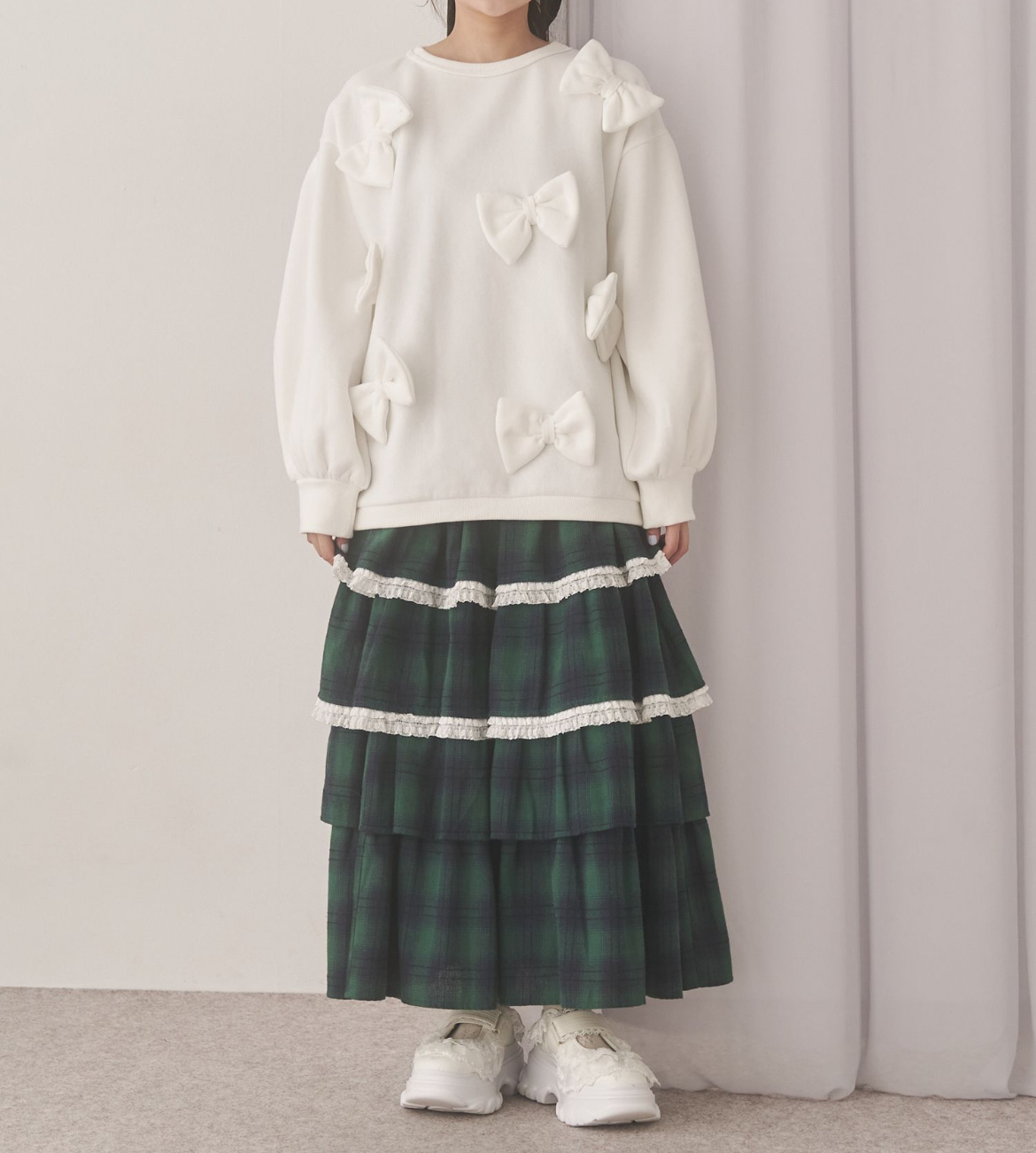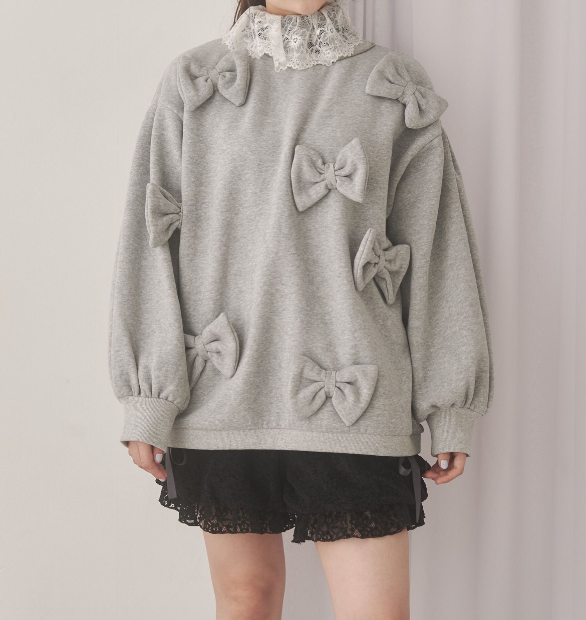 ぽんぽんぽん!と立体的なリボンがついた裏起毛スウェット〇