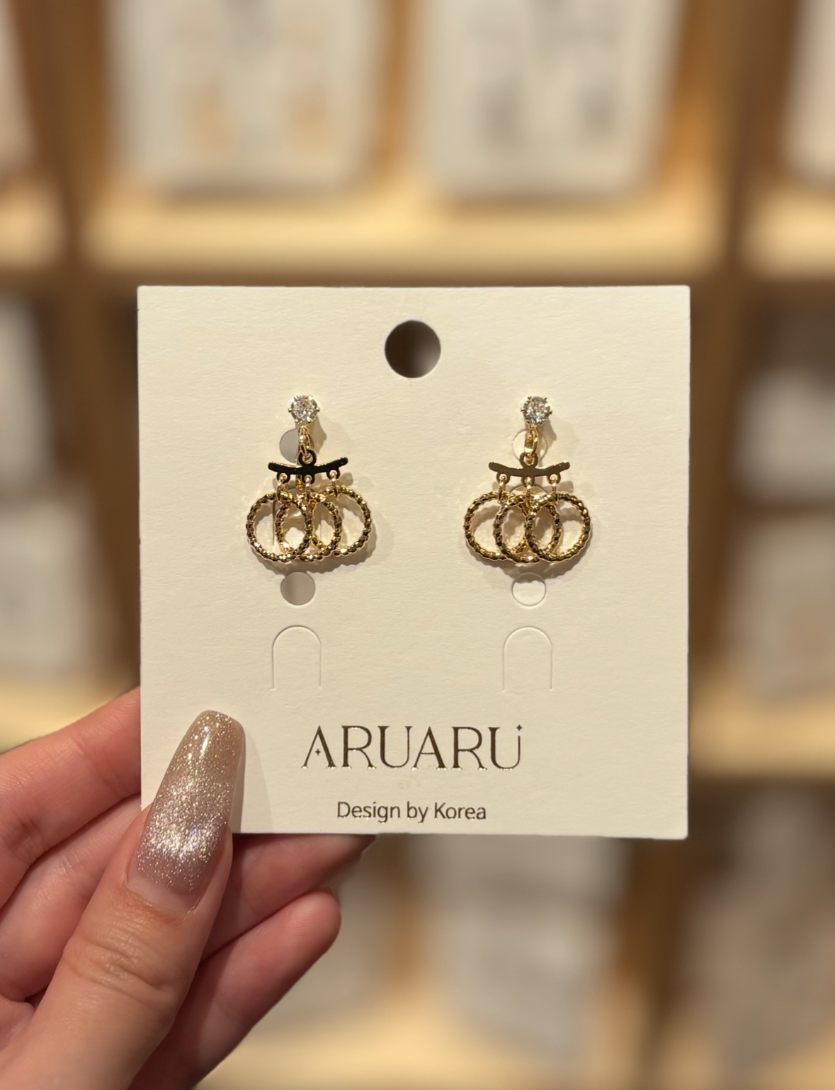 重なり合う3つのリングが揺れる、立体感がかわいいイヤリング✨