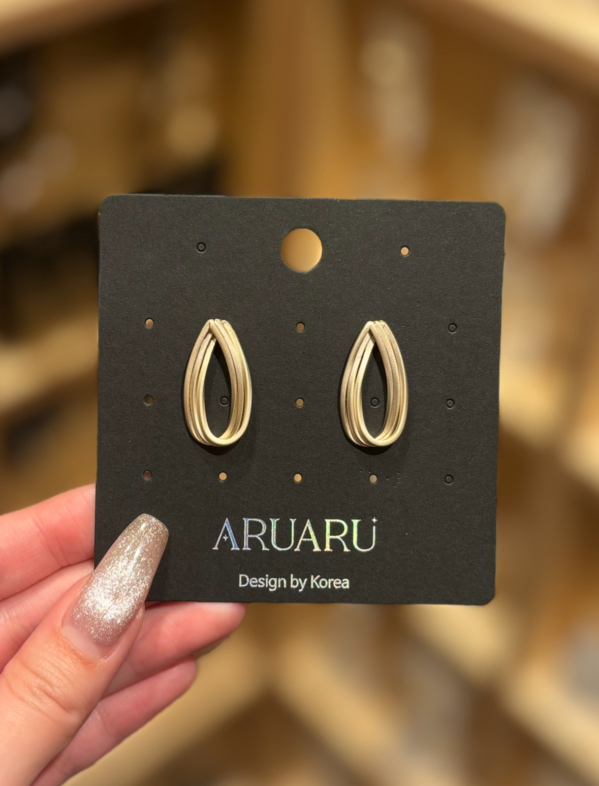 立体的に重なったラインがポイントの、シンプルだけど存在感のあるピアス✨
