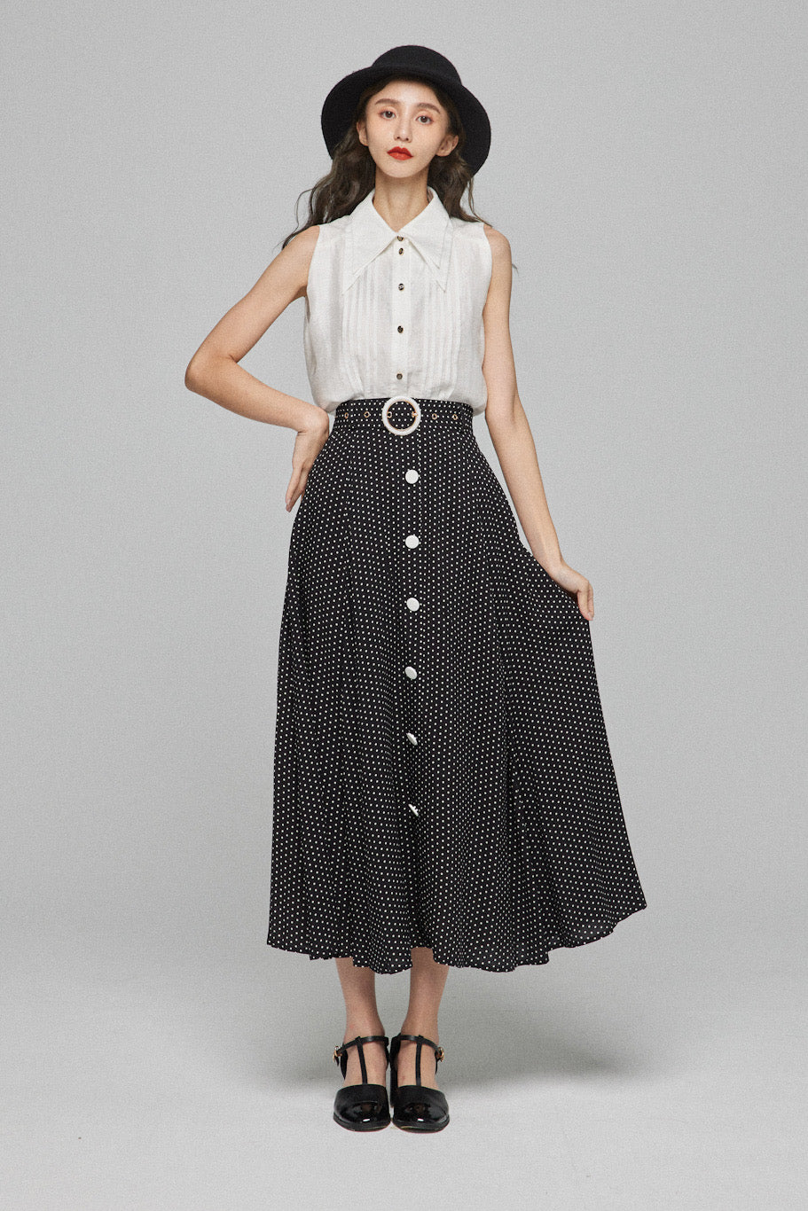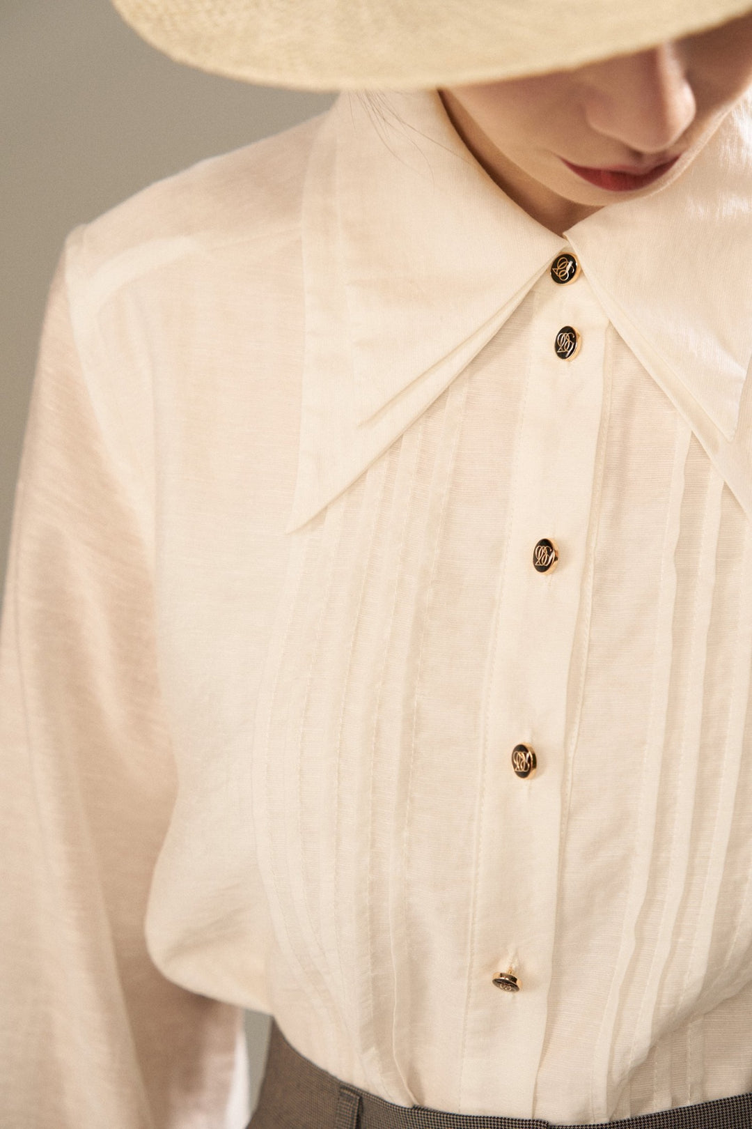 特徴的な襟とピンタックがかわいいブラウスです!
