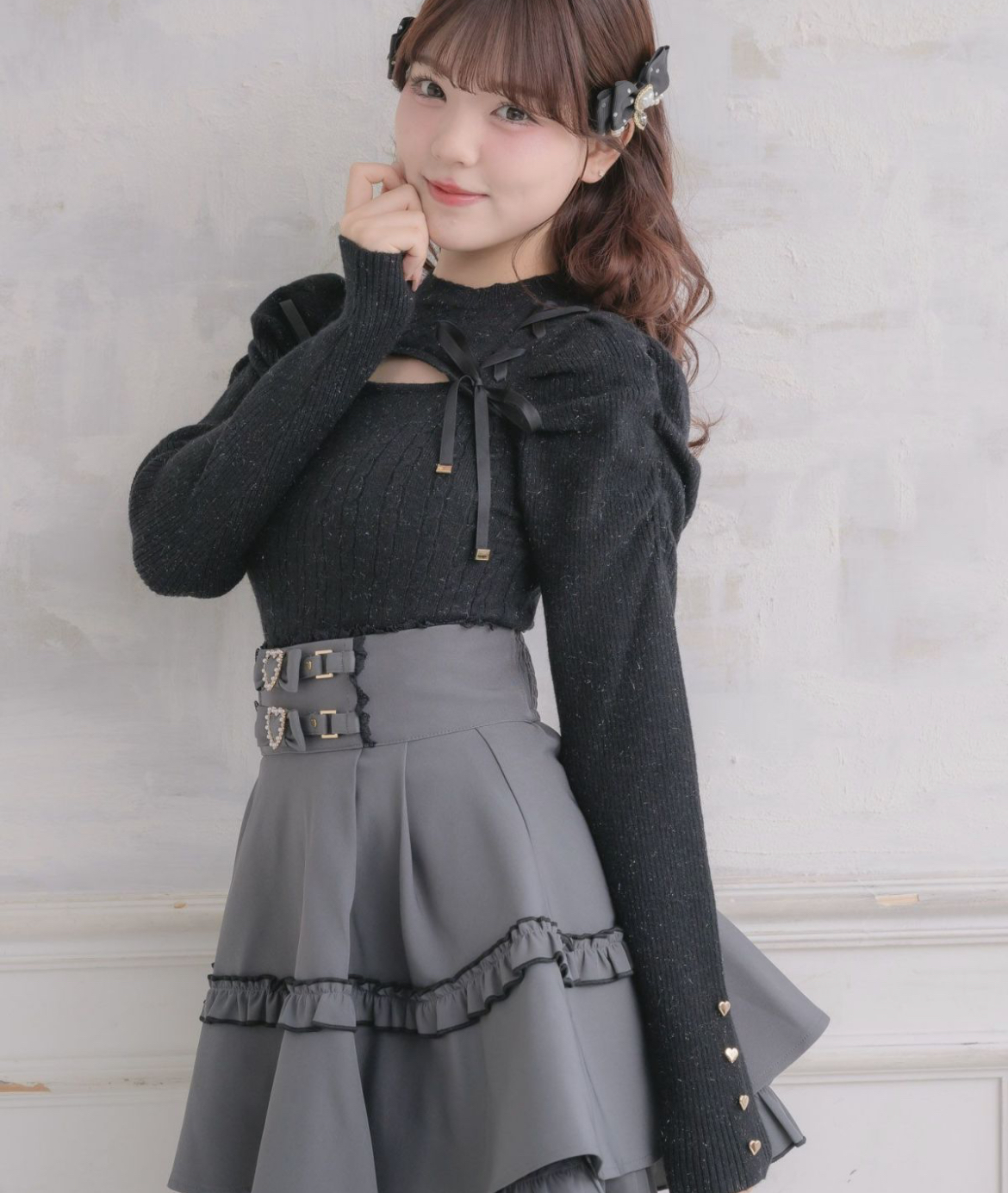 ケーブル編みの温かみある素材感に、華奢なレースアップデザインが甘さと大人っぽさを織り交ぜて。程よくタイトなシルエットが女性らしいラインを際立たせ、ほんのり肌見せするデコルテがヘルシーな抜け感を生み出します。冬のスタイルに華やぎを添える、上品ガーリートップスです。