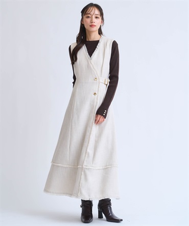 夏に好評だった「フリンジサマーツイードワンピース」を秋仕様にアップデート。