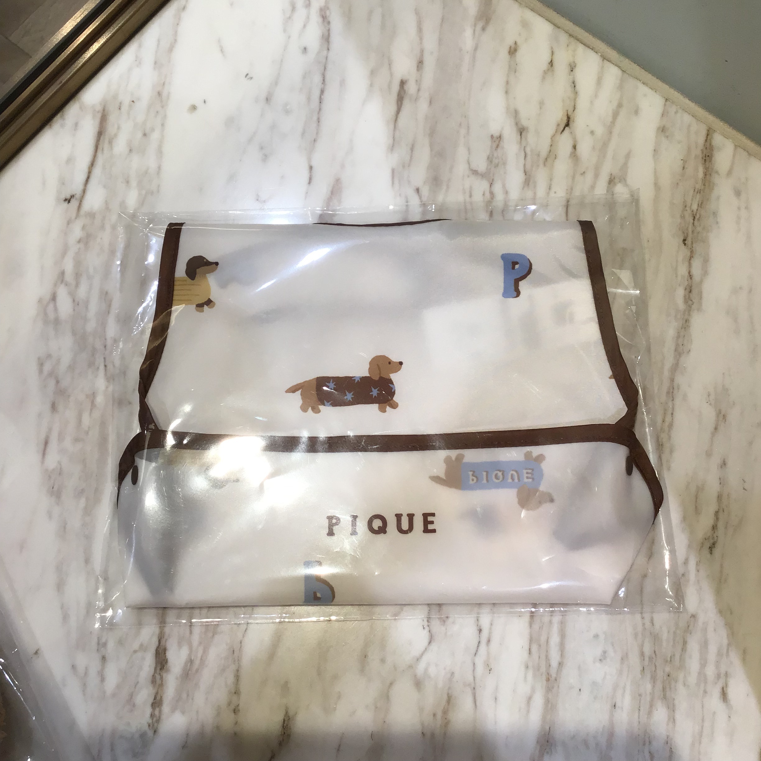 ちょこんとした足が愛嬌たっぷり💞ダックスフンドがカラフルなお洋服を着た総柄プリントのBABY小物シリーズです👶🏻👣ボーダー柄やロゴ入りなど、gelato pique風のお洋服をまとったダックスフンドたちを描いたお食事スタイ。EVA素材なので濡れたり汚れたりしてもさっと拭き取ることができ、スナップボタンを外せばフラットに折り畳んでバッグに入れられます🍽フロントにワンポイントでPIQUEのロゴもあしらいました。色はクリームとピンクの2色展開🖤同シリーズのウェアや小物とコーディネートしたり、ギフトにもおすすめのアイテムです!
