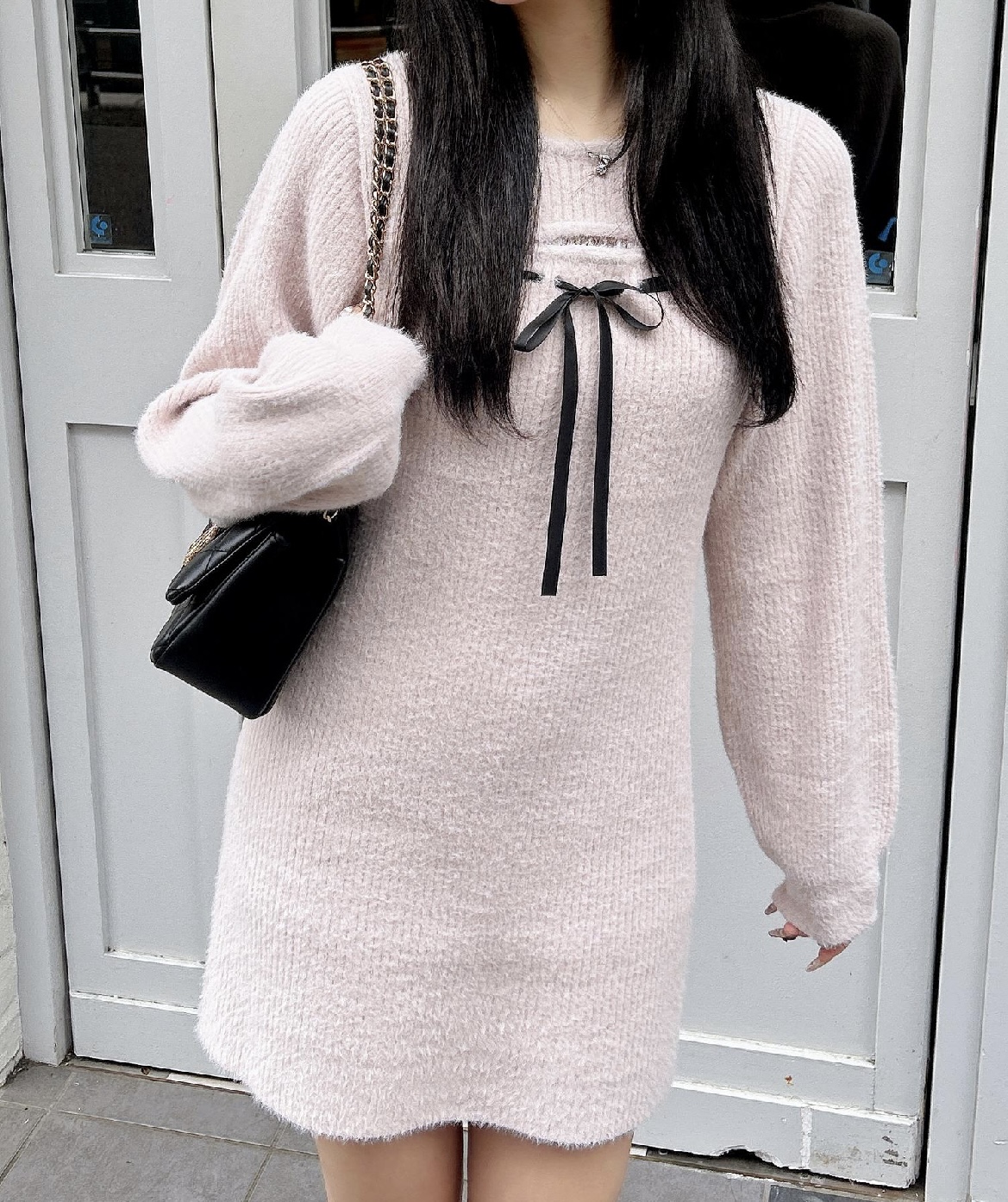 ふんわりとしたフェザー素材のニットなので着心地もよくて暖かいこの冬大活躍のニットワンピースです👍🏻🤍