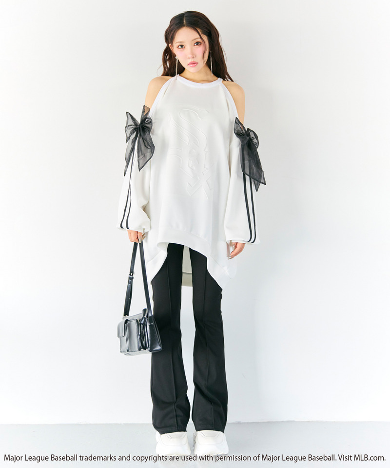 【MLB】エンボスロゴBIGリボンコールドショルダーチュニック
