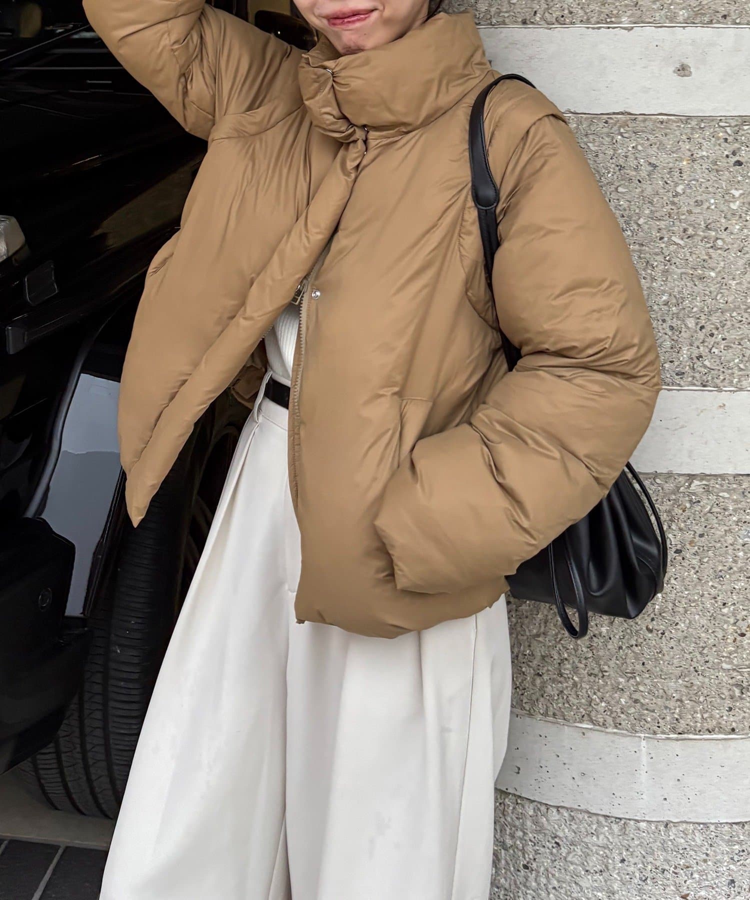 袖を取り外してベストとしても着られる中綿ジャケット♡ 吸湿、放湿性に優れており、蒸れにくく心地よいアウター。 短丈でバランスのとりやすいアイテムです!