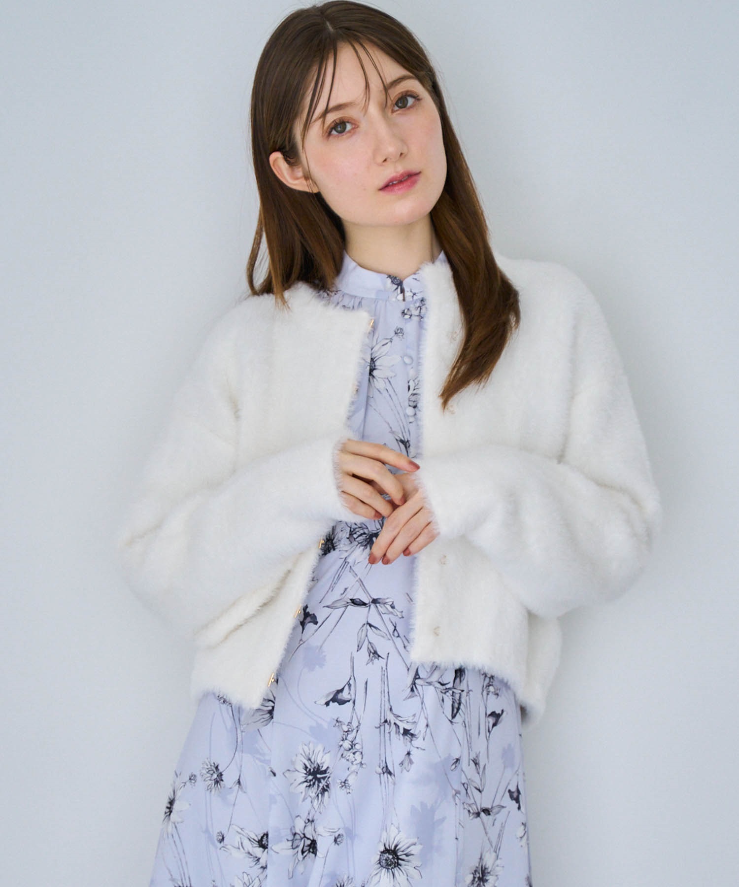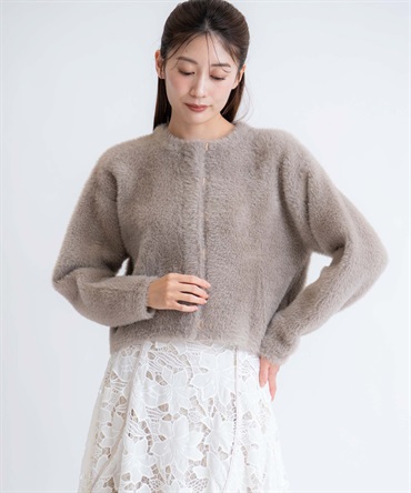 コーデを上品に華やげてくれる、ふわふわのシャギーニットジャケット。