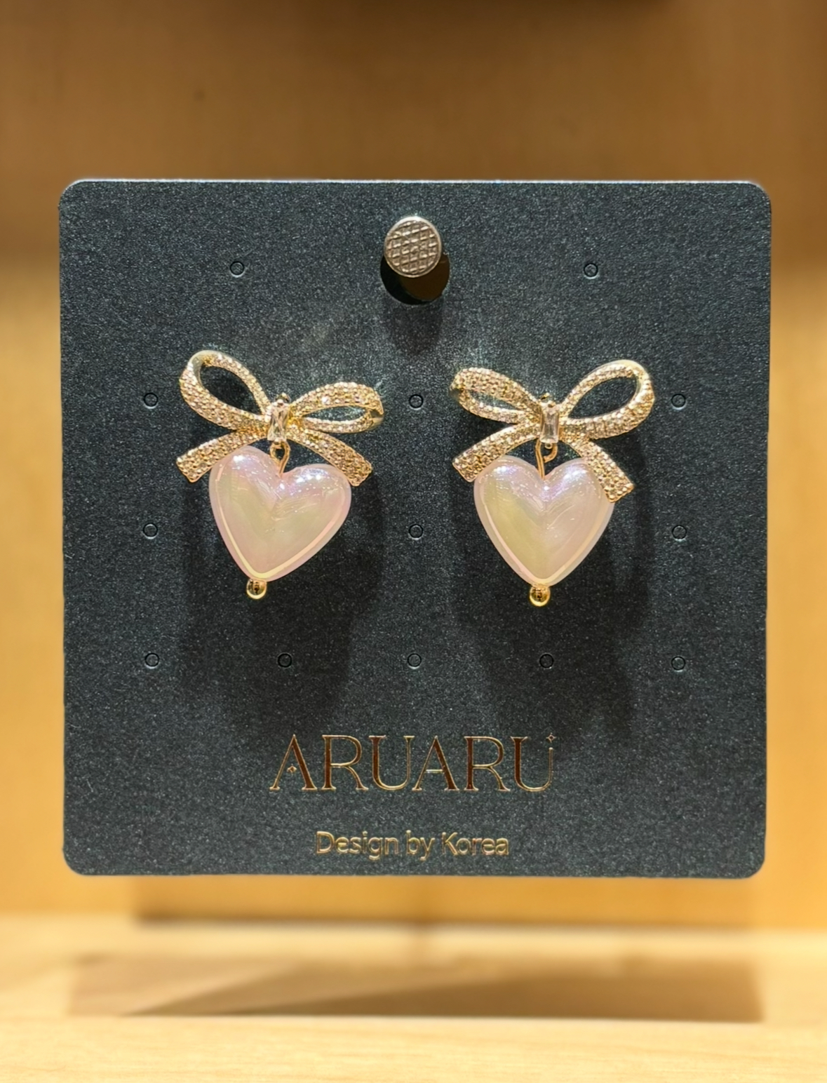 きらっと輝くリボンの下で、オーロラカラーのハートが揺れる上品なデザイン🎀💎