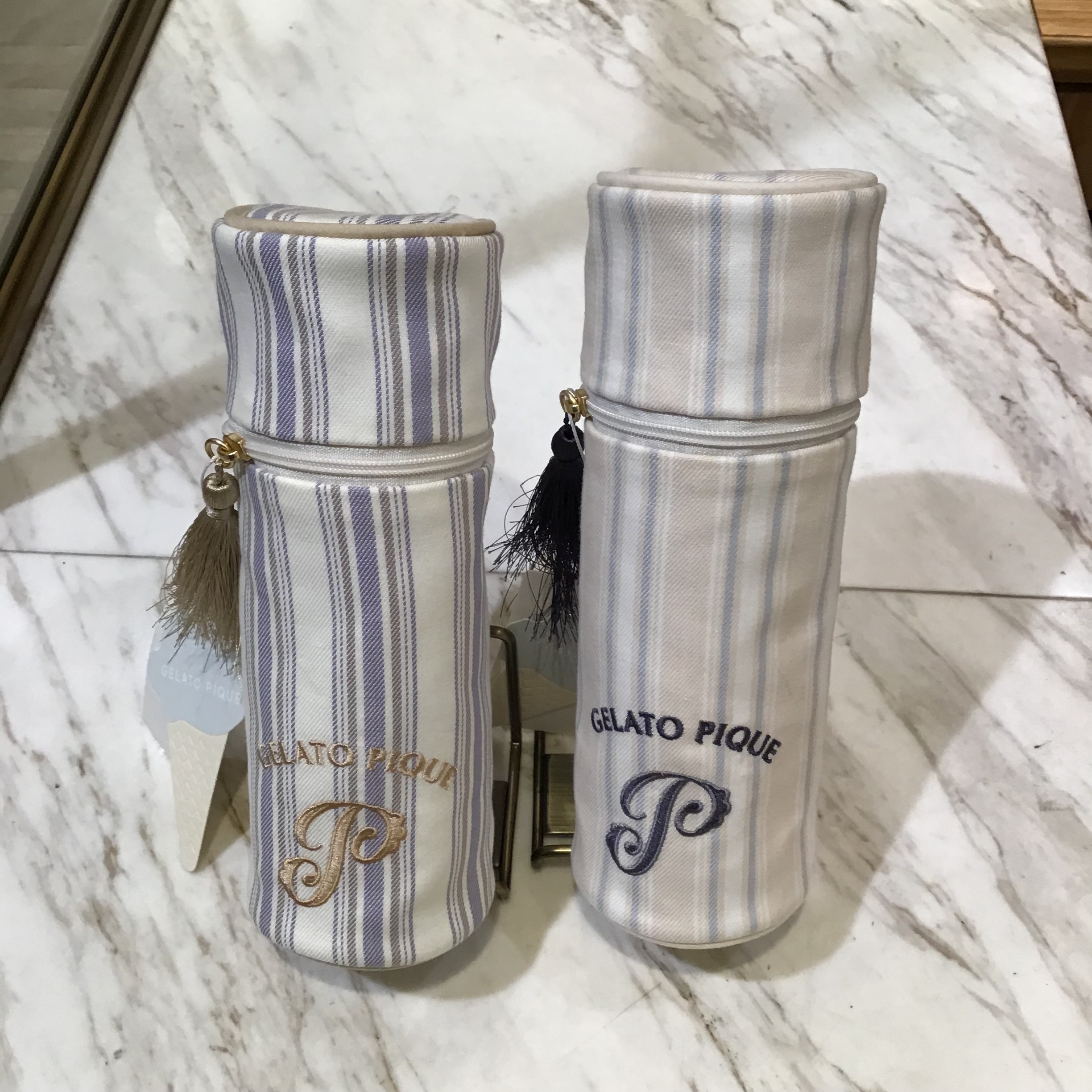 ヘアブラシなど長さのあるものをすっきりと収納できるので、旅先にもおすすめです💐それぞれ色違いのエンブレムロゴ刺繍を入れ、ファスナーの引き手にも配色のタッセルを付けました🎶色は飽きのこないブルーとベージュの2色展開💙🧡
