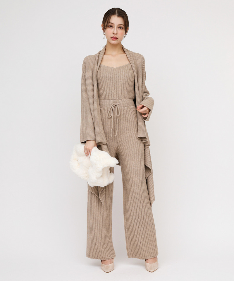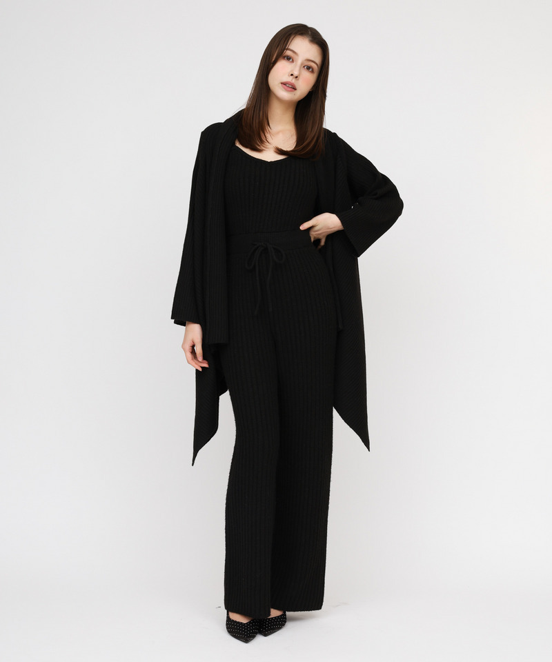 用尺をたっぷりと取り表情豊かに演出したイレヘムカーディガン×リブニットオールインワンのセットアイテム。