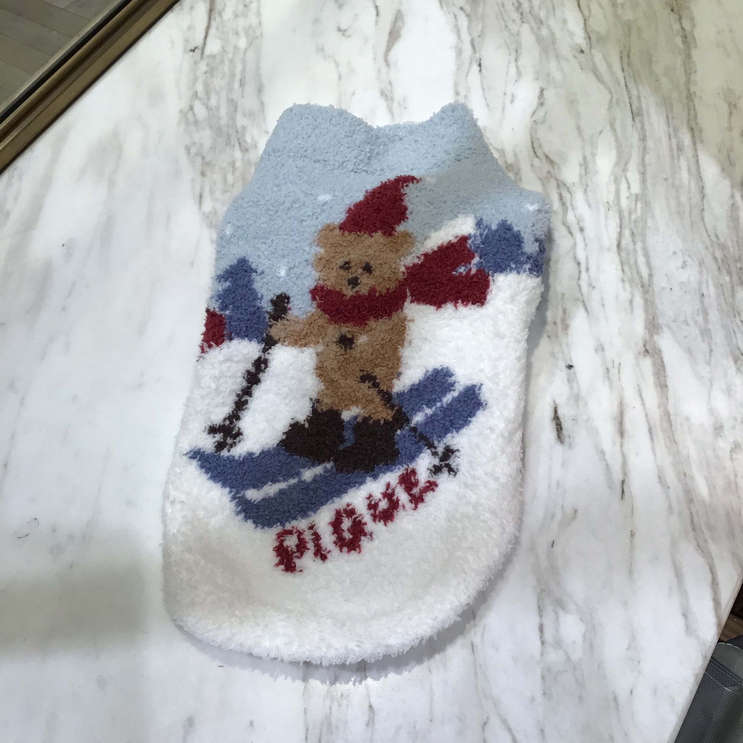 ルームウェアとお揃いの、雪山をスキーするベアのイラストをモチーフにしました🏔❄️🐾絵柄と同様に赤いニットキャップとマフラーを巻き、ブーツをはいている愛らしい姿。カサカサ素材と笛が入っています🔔同シリーズのスキーベアプルオーバーと組み合わせたり、ギフトにもおすすめのアイテムです🎁🎶