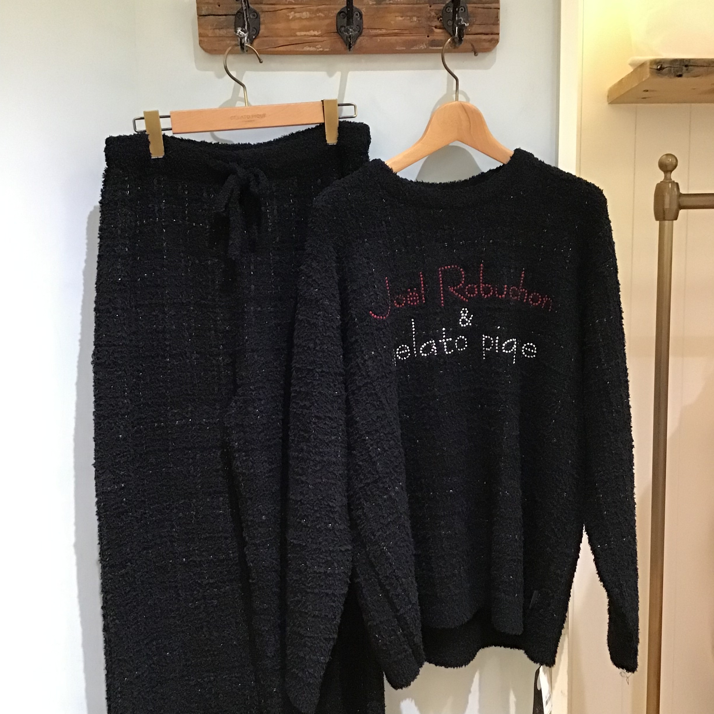 さりげない輝きのラメ糸など、4種類の糸を贅沢に使用したツイード調モコのHOMMEプルオーバーです。風合い豊かな立体的な格子模様に、大きめのロゴ刺繍をあしらったキャッチーなデザイン。ベース素材は“パウダー”なので、gelato piqueらしいさらっとした柔らかい着心地でリラックスしていただけます。同シリーズのロングパンツと合わせたり、LADIES’アイテムとのリンク・コーディネートもお楽しみください。