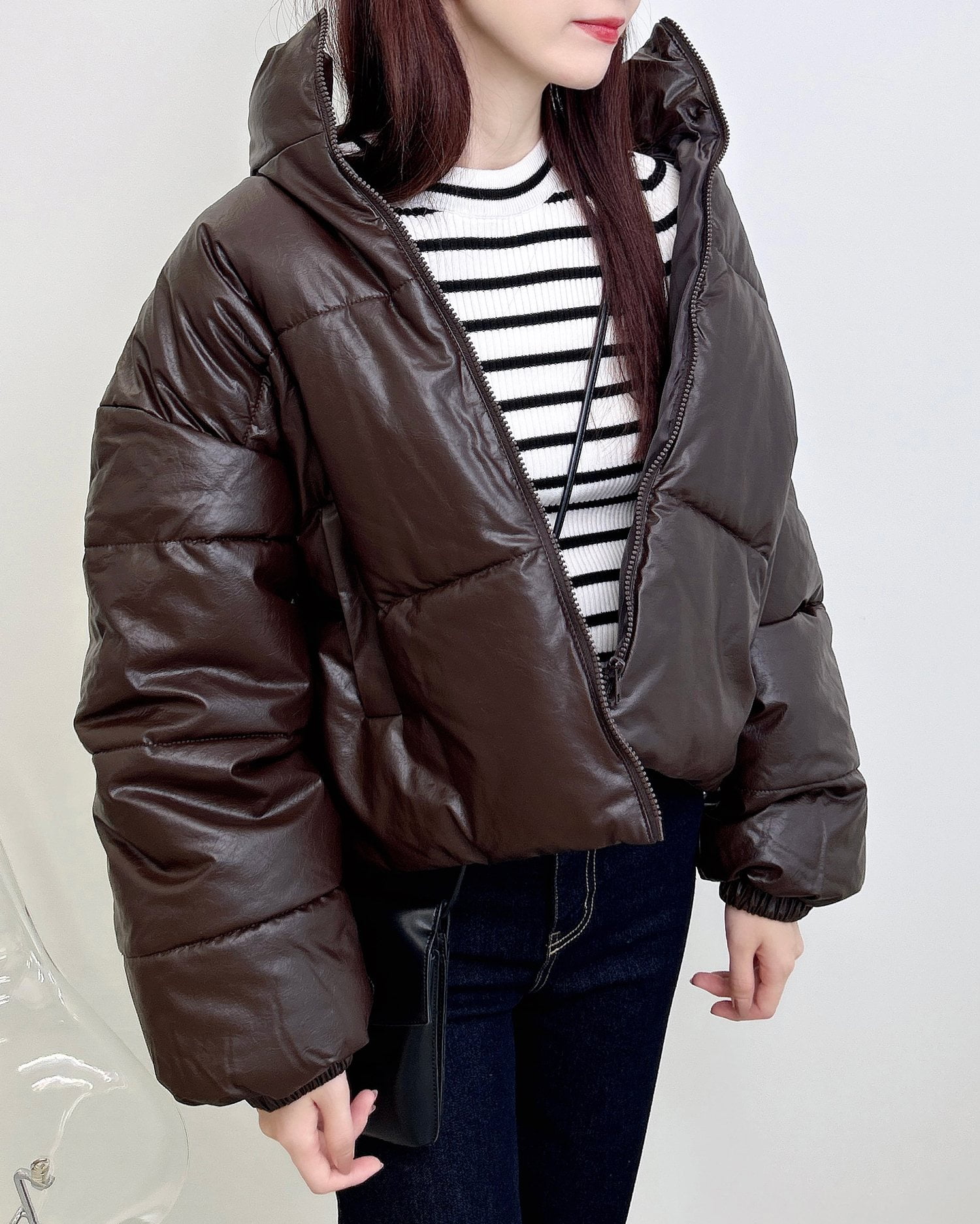ボリュームのあるエコダウンをフェイクレザーでスタイリッシュに🍀