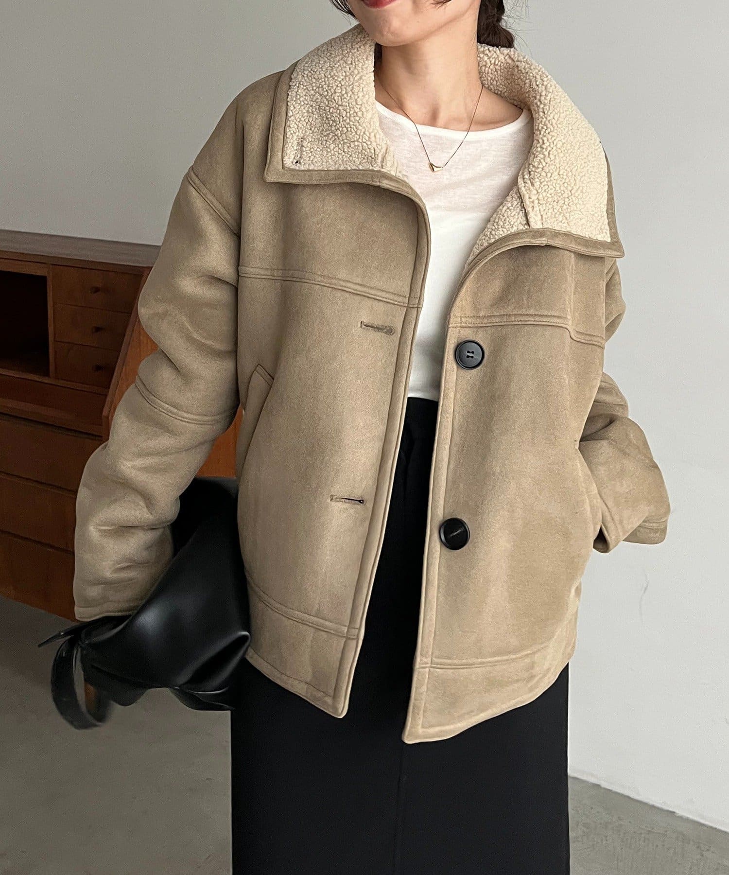 スエード素材で中がボアになっているので暖かくニットとの相性もばっちりです✨