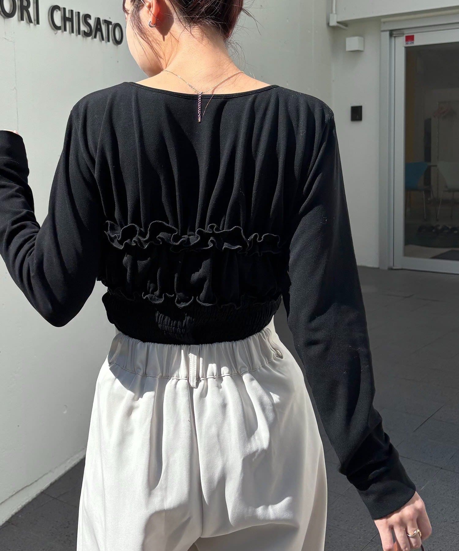 ブラウス見えする着映えカットソー 華やかなフリル切替が目を引くベアデザイン 柔らかい裏起毛素材で着心地抜群✨