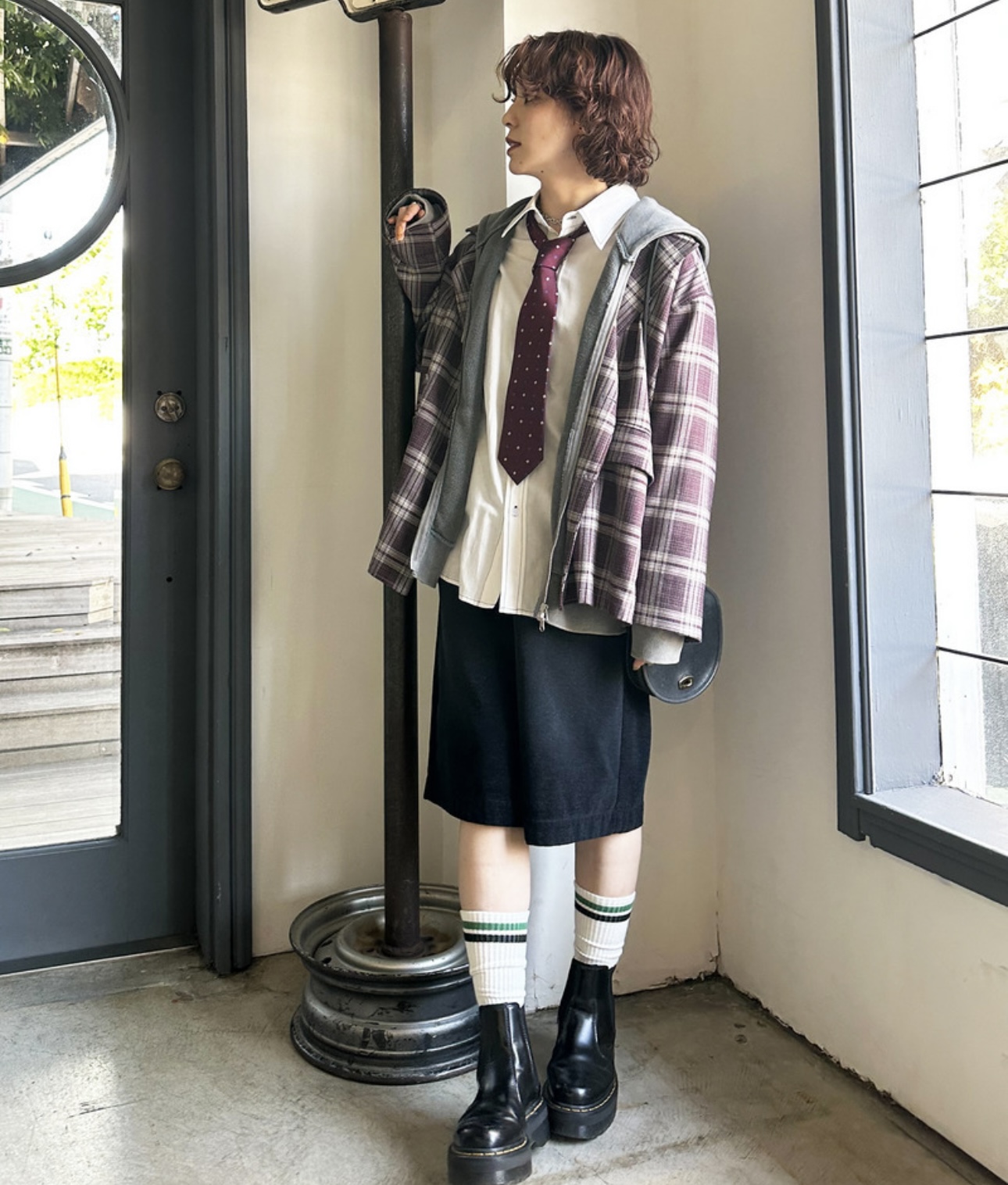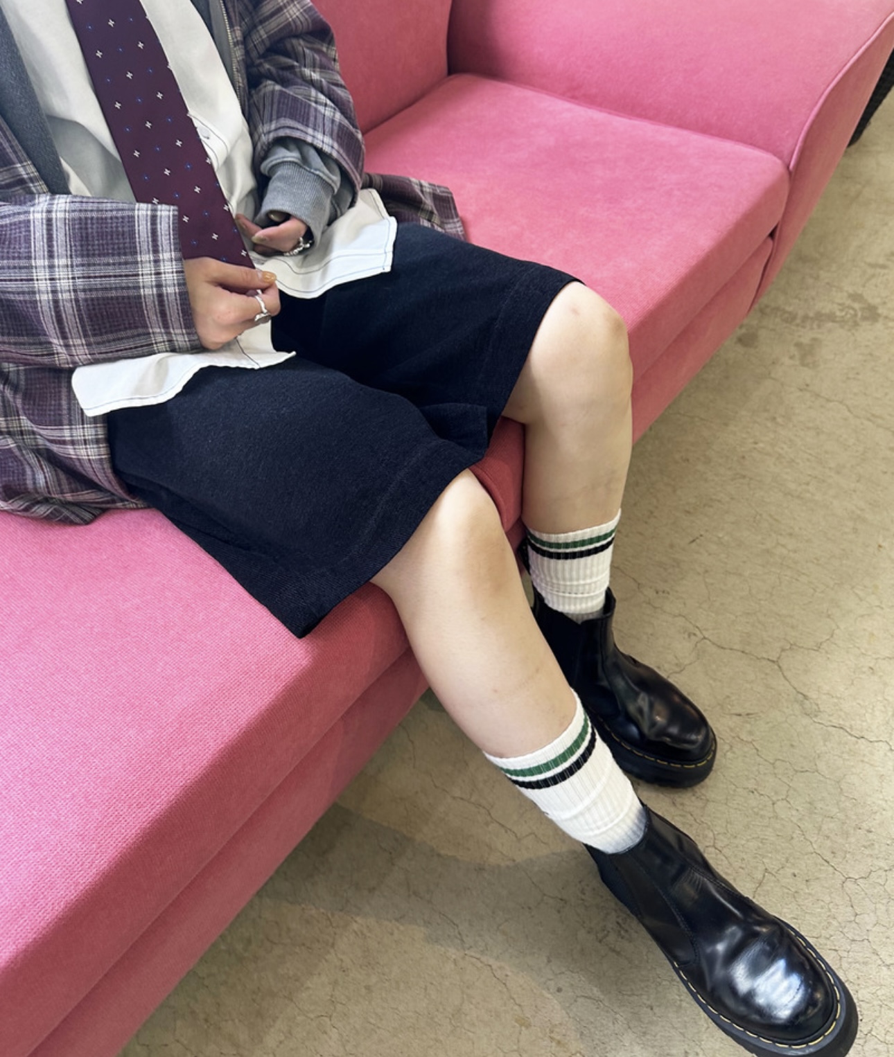 足元は、ゆるリブソックス×スニーカーでカジュアル可愛く、