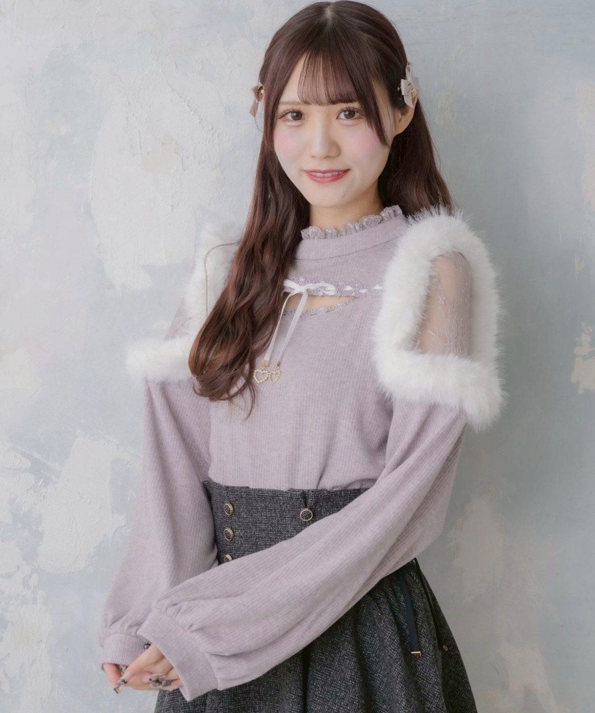クリスマスシーズンにぴったりの主役級トップス♡デコルテの開きがほんのり大人のエッセンスをプラスし、存在感のあるファーショルダーが特別な日の装いにピッタリ♪程よい厚みでトップスインもしやすく、コーディネートの幅も広がる1枚です。