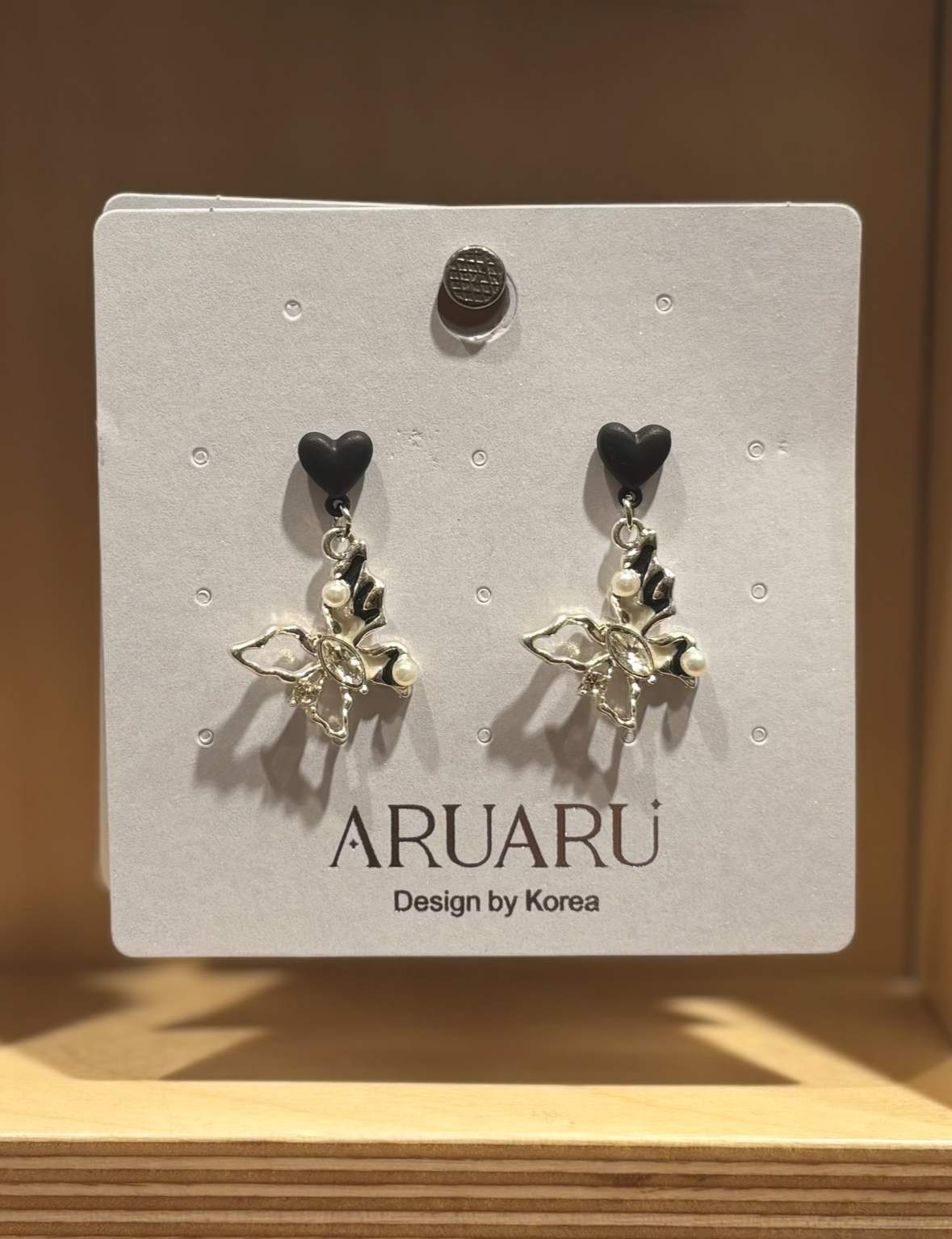 トップのブラックハートが程よいアクセントの甘辛デザインピアス🦋♡