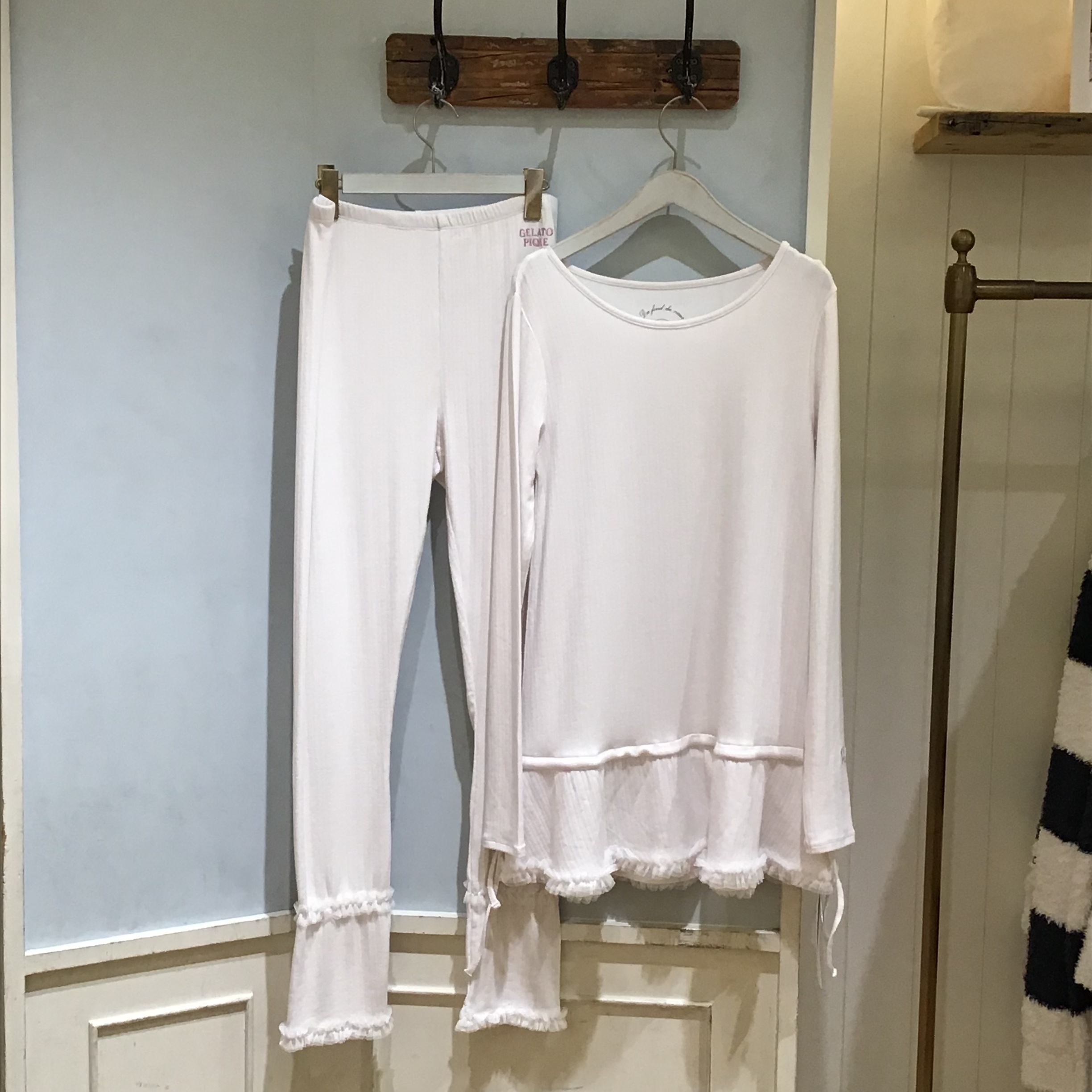 ワンピースと重ね着して裾フリルのニュアンスを楽しんだり、秋冬の冷え対策としても重宝する1本です🧶左腰にワンポイントでロゴ刺繍入り。幅広い着こなしをお楽しみいただけるよう、ベーシックなオフホワイトでご用意しました💞