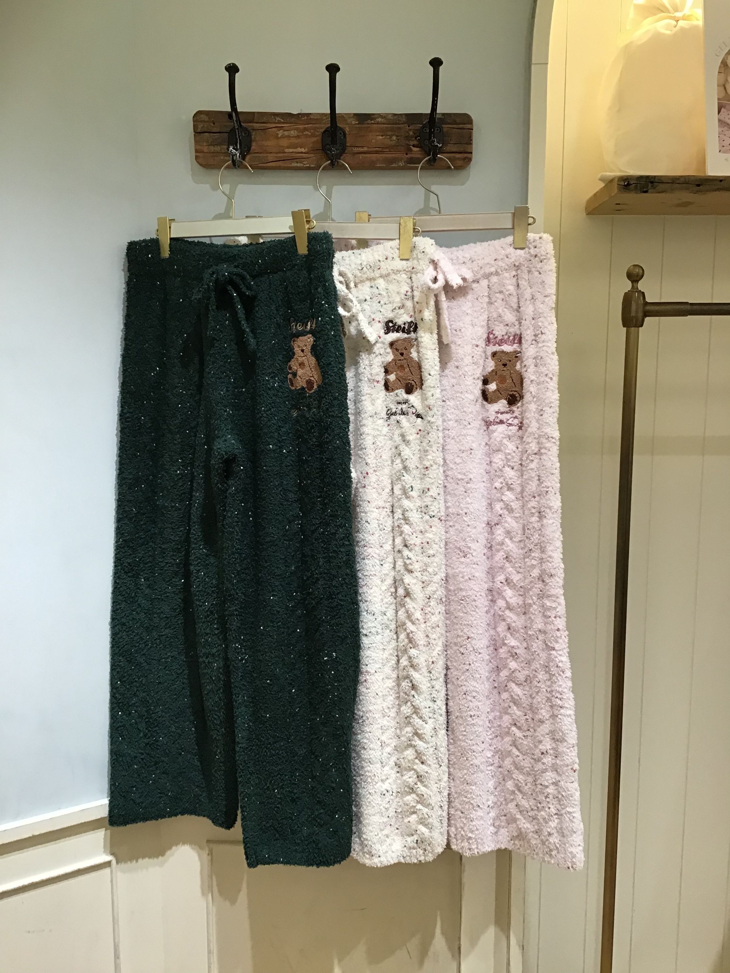 クリスマスの甘いお菓子をイメージした、カラーネップ入りの’パウダー’素材のロングパンツです🎄🤶もこもこのアラン柄を入れたストレートシルエットで、腰元には1902年にSteiffが生み出した世界で最初のテディベア『55PB』をさがら刺繍で施しました。粉砂糖のようなパウダリータッチに包まれるアイテムです!