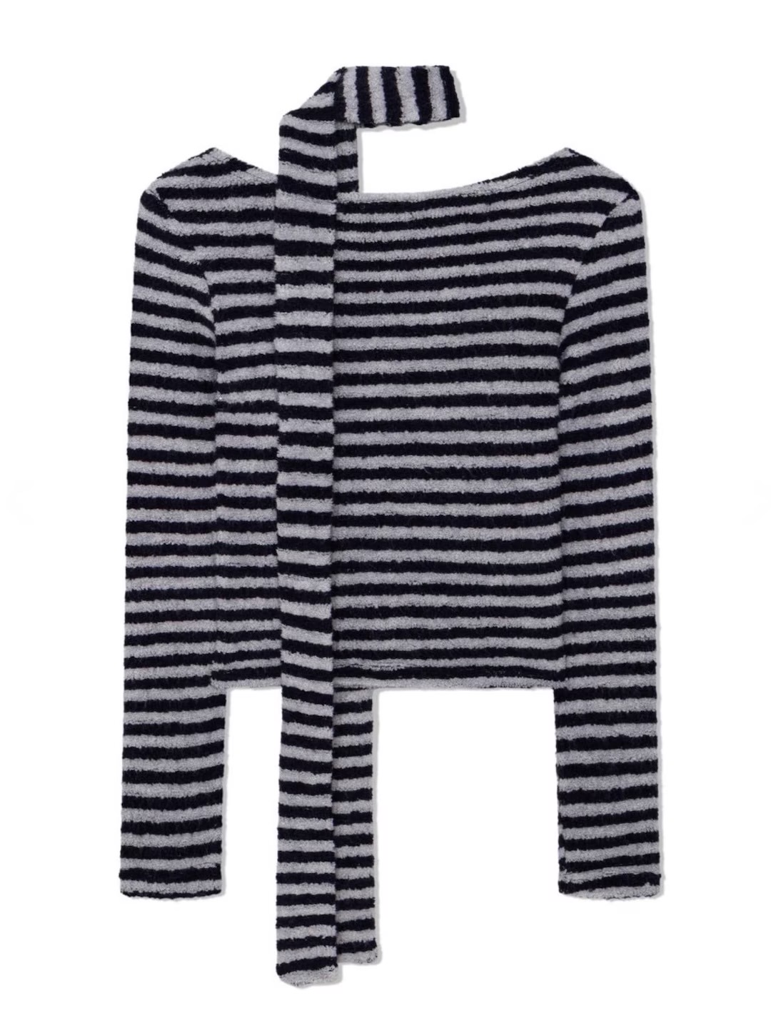 広めのUネックになっており、鎖骨を見せてスタイルアップができるアイテムです