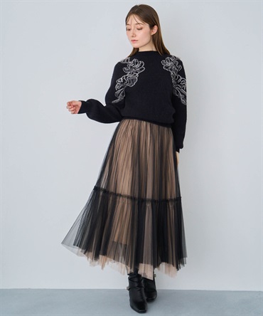 カラーの異なるチュールを2枚重ねた、軽やかなイレヘムデザインのスカート。