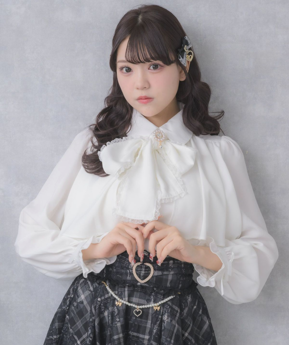 季節感アップ♡人気デザインが長袖になって再登場!首元のボウタイリボンが華やかさと可愛らしさをプラス。フレア感のあるケープデザインや艶めくハート釦で、とことん女の子らしい雰囲気に。レース配色がアクセントになった、一枚で華やぐブラウスです。