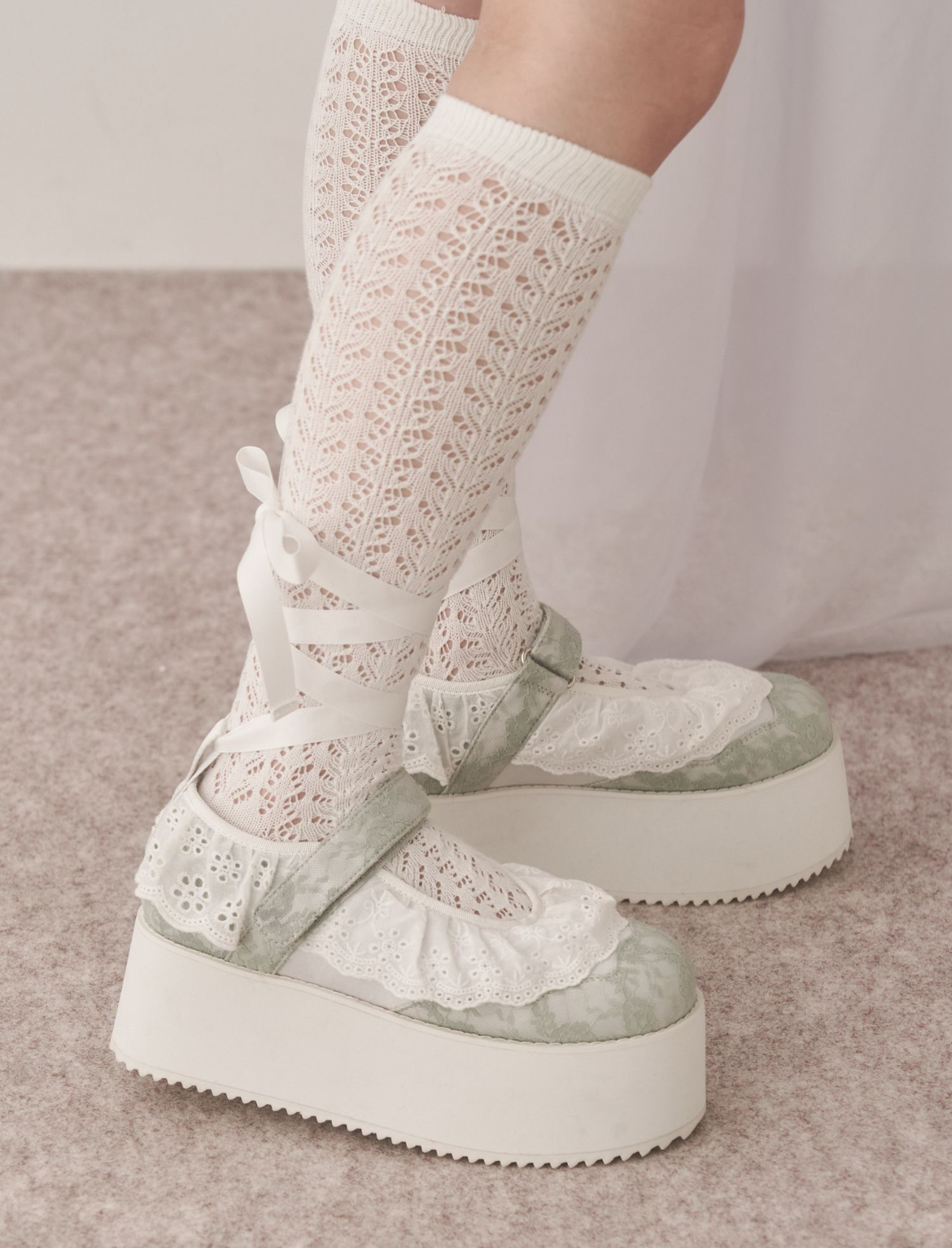 タイツやレースソックスと合わせてレースアップして冬の足元をデコレーションしてください