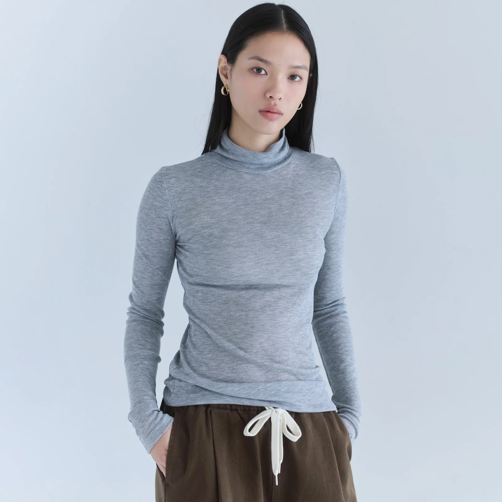 冬の定番〈エアリーSlim RIBトップス〉にハイネックタイプが登場。以前のシリーズよりも余裕を持たせたサイジングが大好評です。どんなコーデにも合わせやすい、シンプルなデザインでお作りしました。