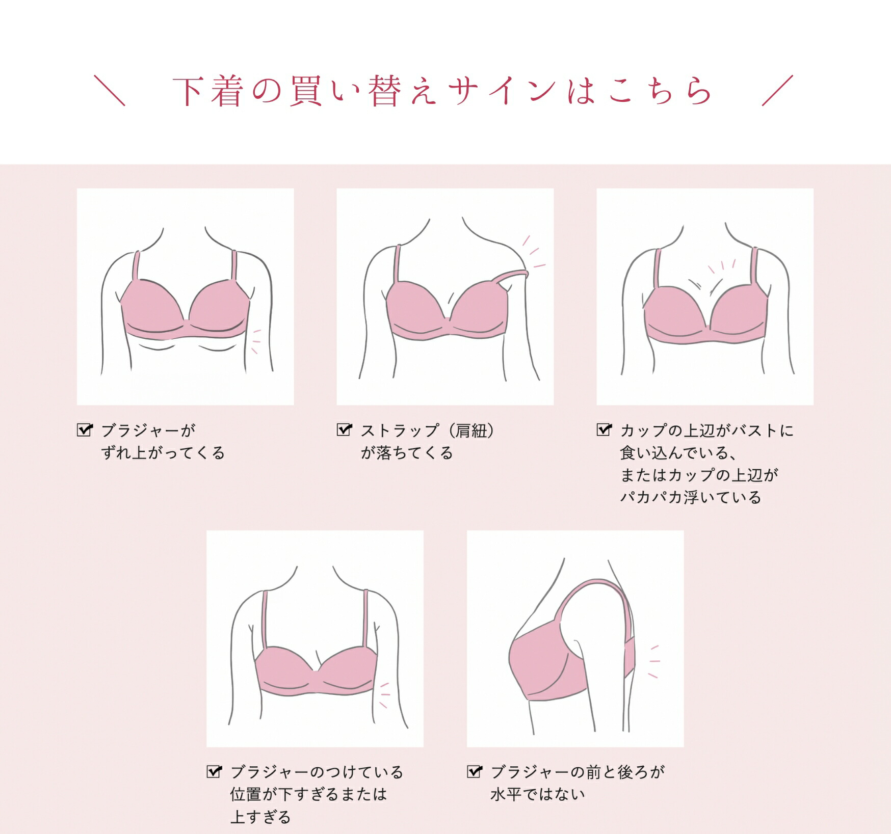 お手持ちのブラは、どんな状態か当てはまるものにチェックしてみましょう❕