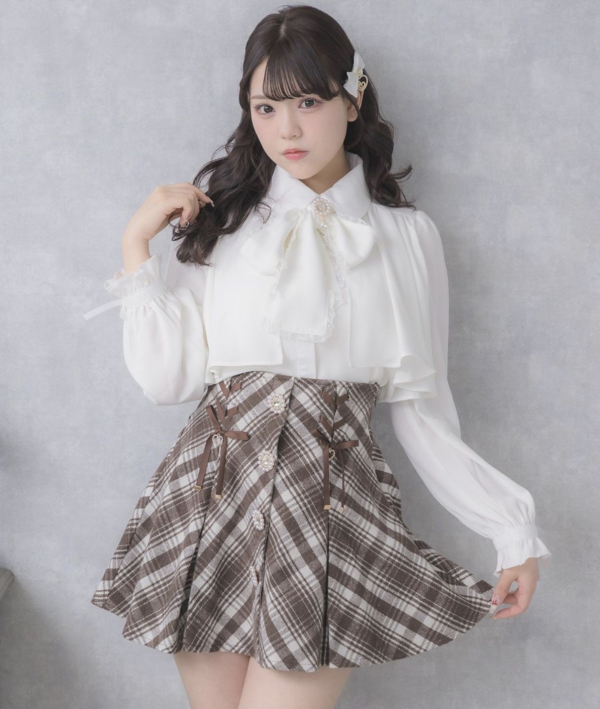 ウィンタームードなチェック柄♡レースアップリボンに付けたハートチャームがレディなムードをプラス◎ふわっとしたシルエットを作るボックスタックデザインが、よりドラマティックにアップデートしてくれます。ウエストをシェイプしてくれるハイウエストなので着膨れせず、脚長効果が◎